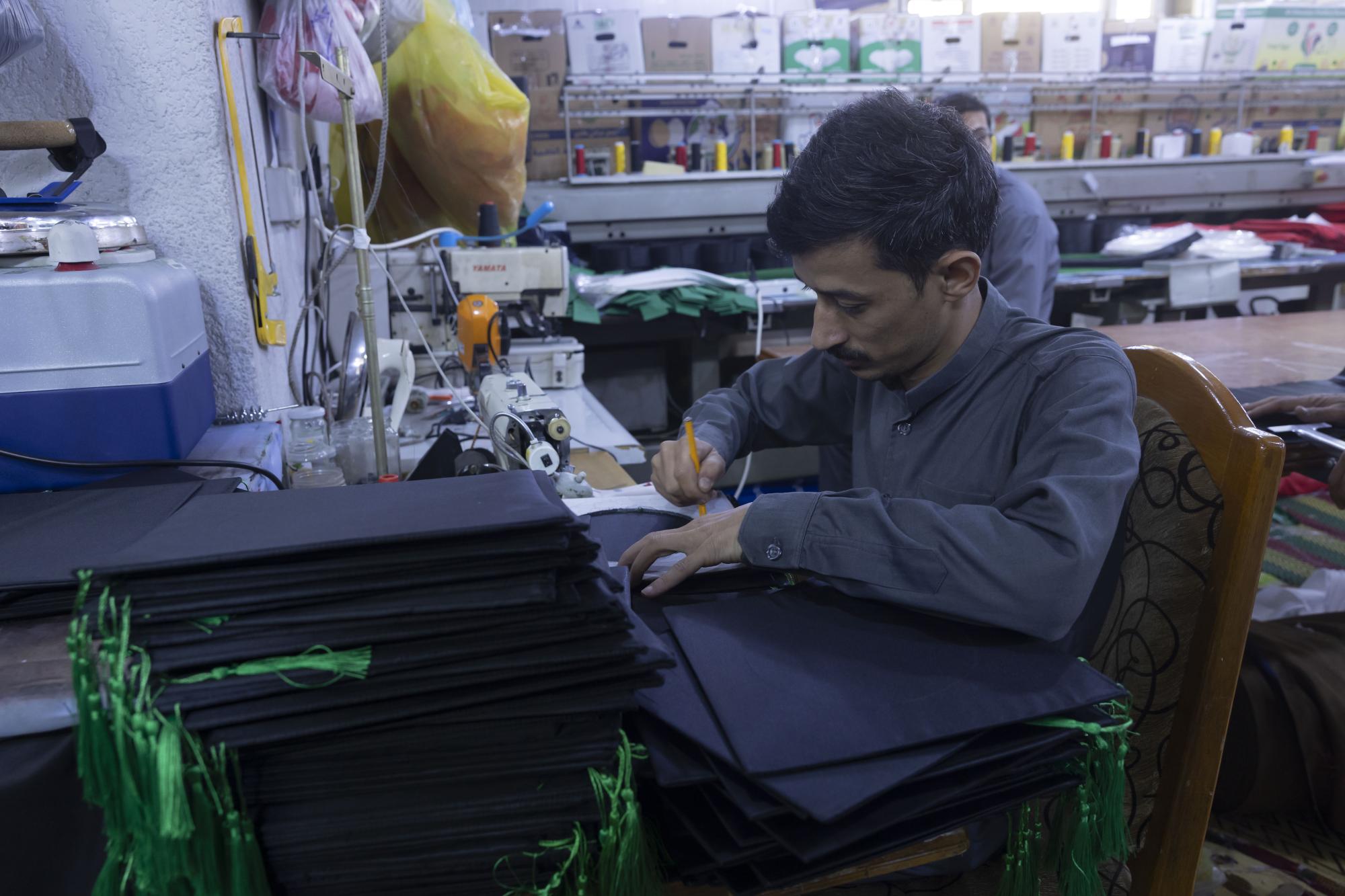 قسم الهدايا والنذور يباشر خياطة أوشحة وقبعات حفل تخرج طالبات الجامعات العراقية