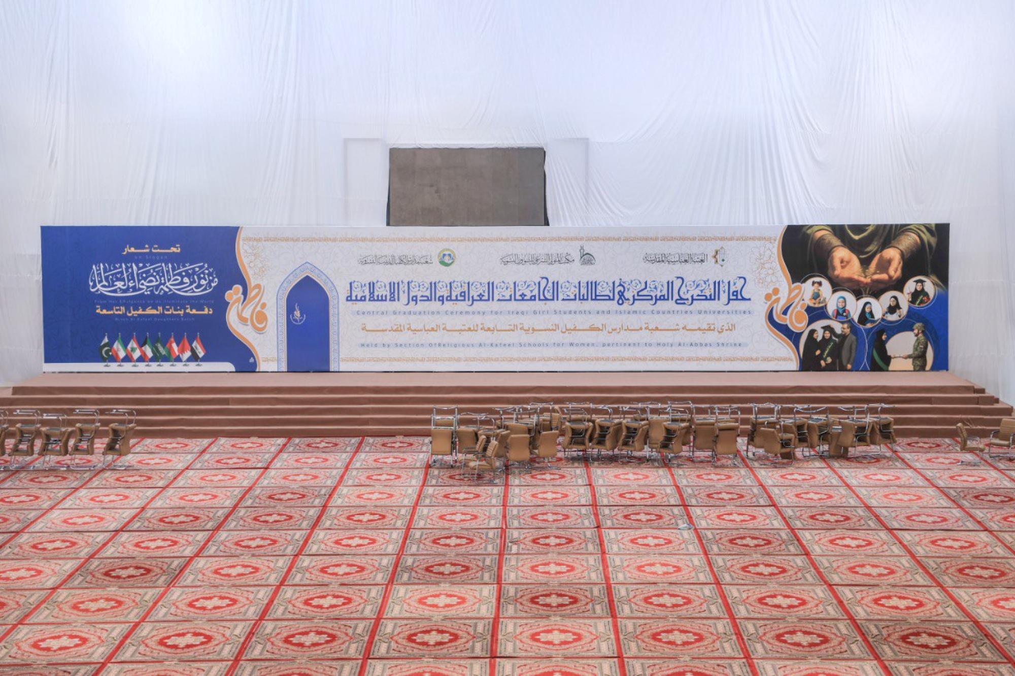 قسم الصناعات ينهي تجهيز منصة حفل تخرج طالبات الجامعات في مجمّع أبي الفضل العباس (عليه السلام)
