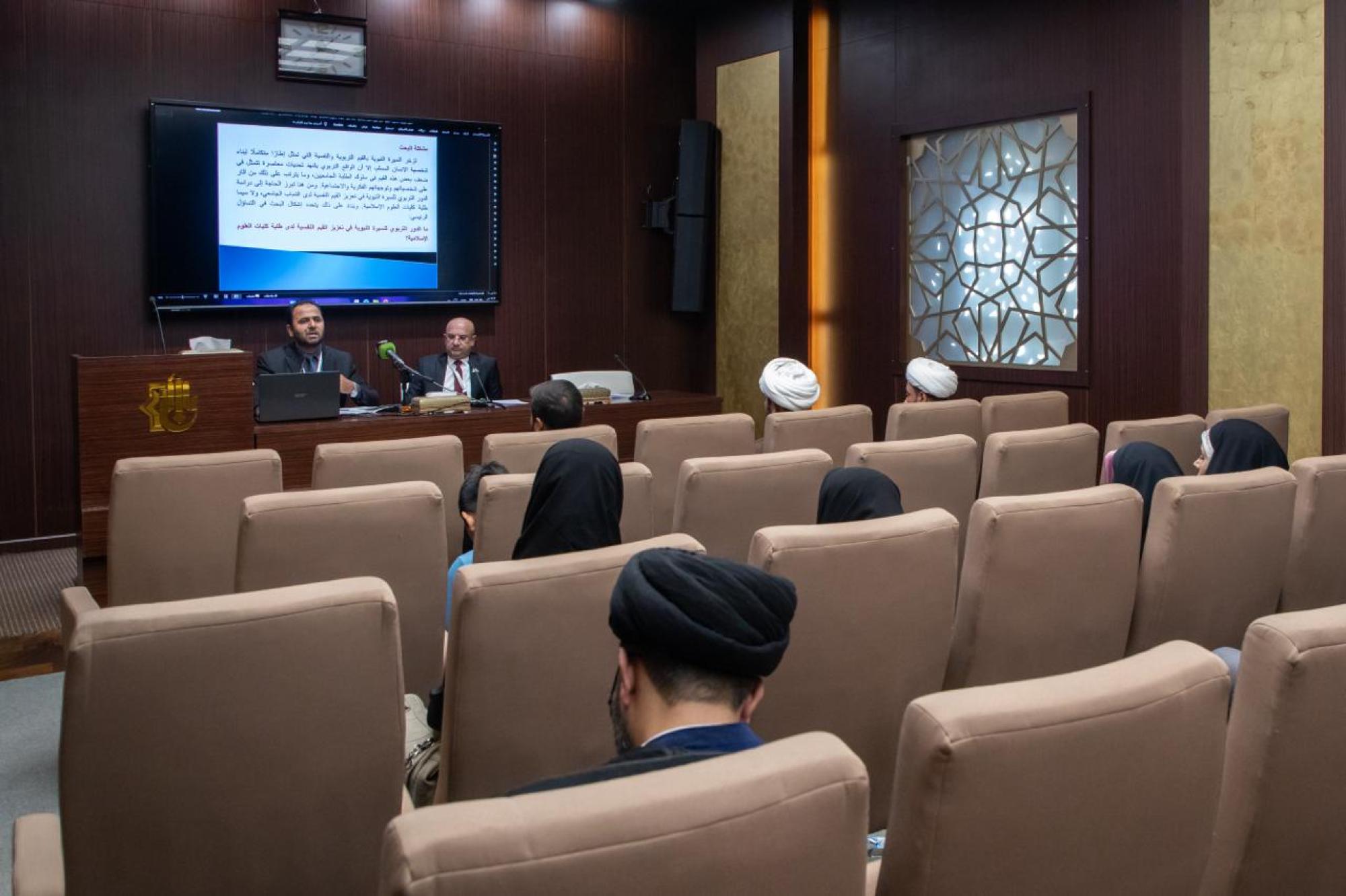 قدم الباحثان أ. د حسين حسين زيدان، و د. هديل علي قاسم بحثًا بعنوان (الدور التربوي للسيرة النبوية في تعزيز القيم النفسية لدى طلبة كليات العلوم الإسلامية، دراسة ميدانية) ضمن فعاليات مؤتمر دار الرسول الأعظم (صلى الله عليه وآله) العلمي الدولي الرابع. ويُعقد المؤتمر الذي تنظمه الدار التابعة لقسم الشؤون الفكرية والثقافية في العتبة العباسية المقدسة، وكلية التربية الأساسية للبنات/ جامعة العميد، تحت عنوان (السيرة النبوية المباركة بين الثوابت القرآنية ومتغيرات المناهج العلمية)، وتستمر فعالياته مدة يومين. وذكر الباحثان في ملخص بحثهما أنّ "القرآن الكريم يؤكد أهمية اكتساب الفرد المسلم للقيم عبر السيرة النبوية، إذ يقول الله في كتابه العزيز: (قَدْ كَانَ لَكُمْ فِي رَسُولِ اللهِ أُسْوَةٌ حَسَنَةٌ لمَنْ كَانَ يَرْجُو اللهَ وَالْيَوْمَ الْآخِرَ) (الأحزاب: 21)، فالسيرة النبوية من المصادر الأساسية للقيم الإسلامية والتربية الدينية، وتشكل أساسًا للتعليم الإسلامي في كليات العلوم الإسلامية، وتعكس السيرة النبوية نموذجًا مثاليًا للقيم الإسلامية، مثل العدل، والرحمة، والتسامح، التي تُعد أساسًا لبناء الشخصية الإسلامية". وأضافا أنّ "في العصر الحديث، أصبحت هناك حاجة ملحة لتعزيز القيم الإسلامية بين الشباب، خصوصًا في كليات العلوم الإسلامية، التي تُعد مصدرًا للقادة الدينيين والمعلمين في المجتمع"، مبينين أنّ "السيرة النبوية تُعد أداة فعالة لتعزيز القيم النفسية، عبر دراسة حياة النبي محمد (صلى الله عليه وآله) وتطبيقه للقيم الإسلامية". وأوضحا أنّ "البحث يهدف إلى معرفة الدور التربوي للسيرة النبوية في تنمية القيم النفسية لدى طلبة كلية العلوم الإسلامية، ويهدف إلى معرفة الدور التربوي للسيرة النبوية في تعزيز القيم النفسية وفق متغير الجنس (ذكور - إناث)، كما يهدف إلى معرفة القيم النفسية التي تعززها السيرة النبوية وفق رؤية تربوية".
