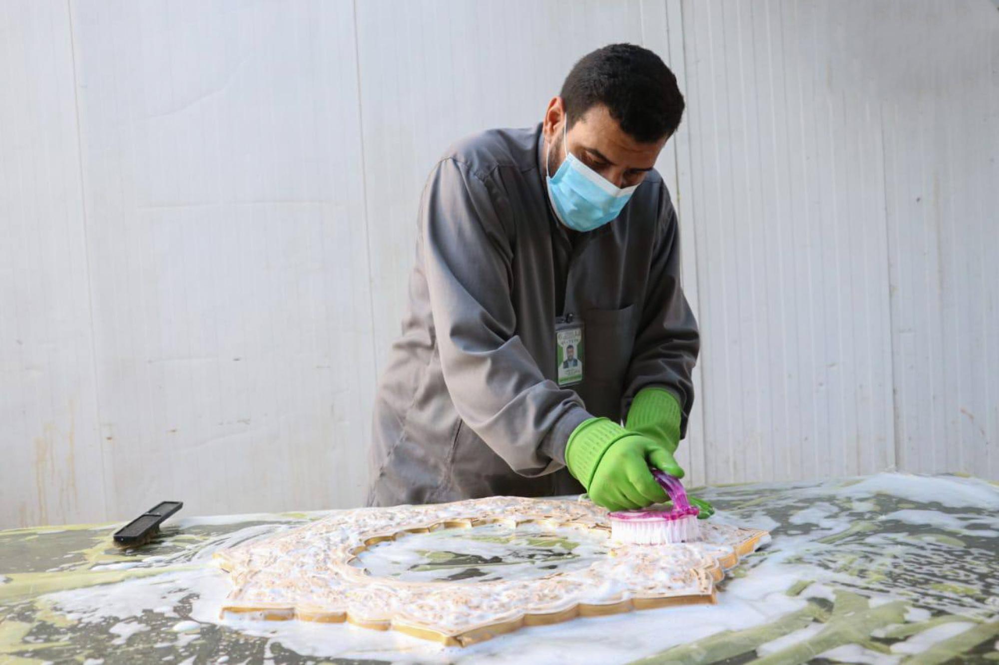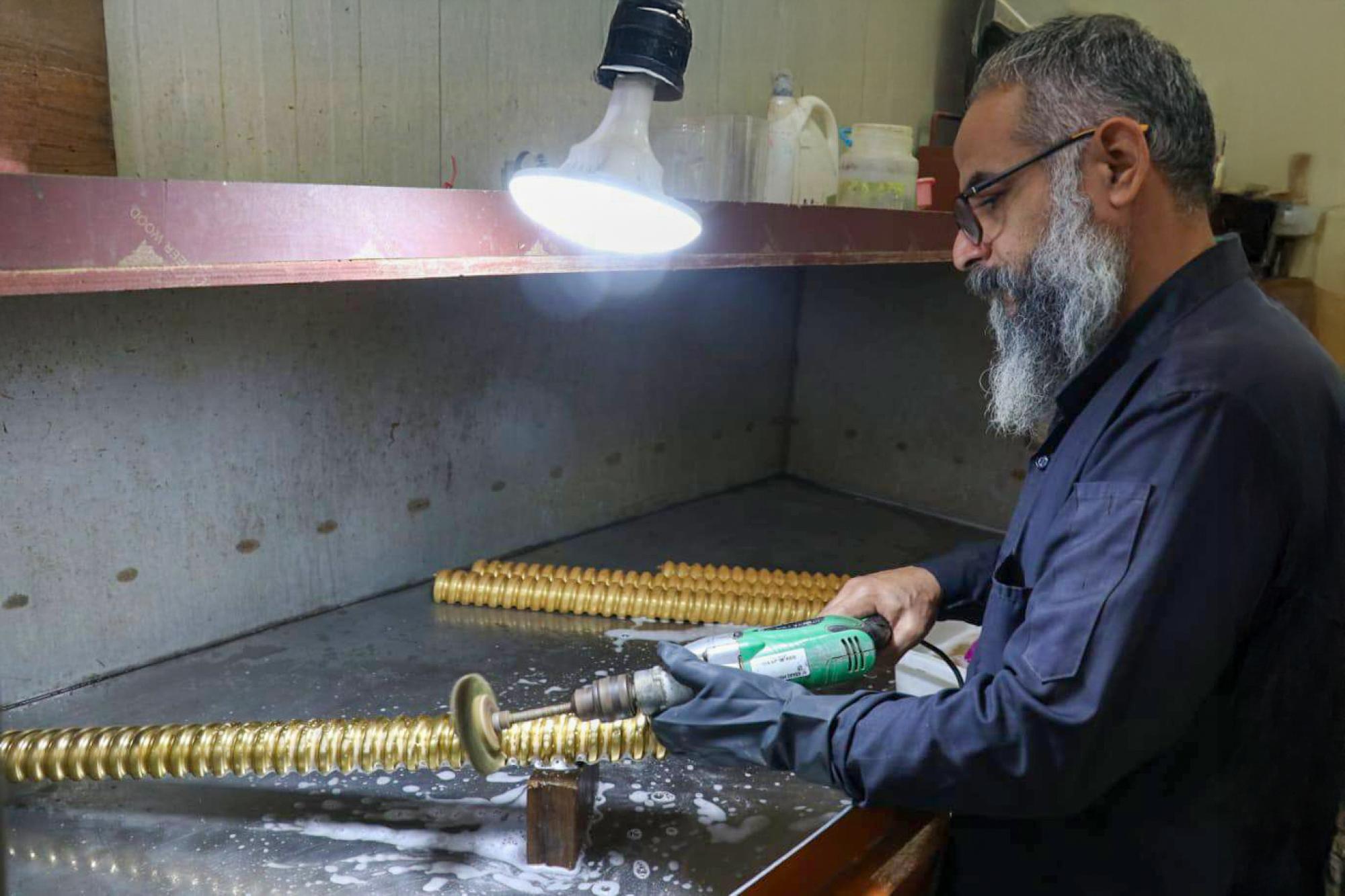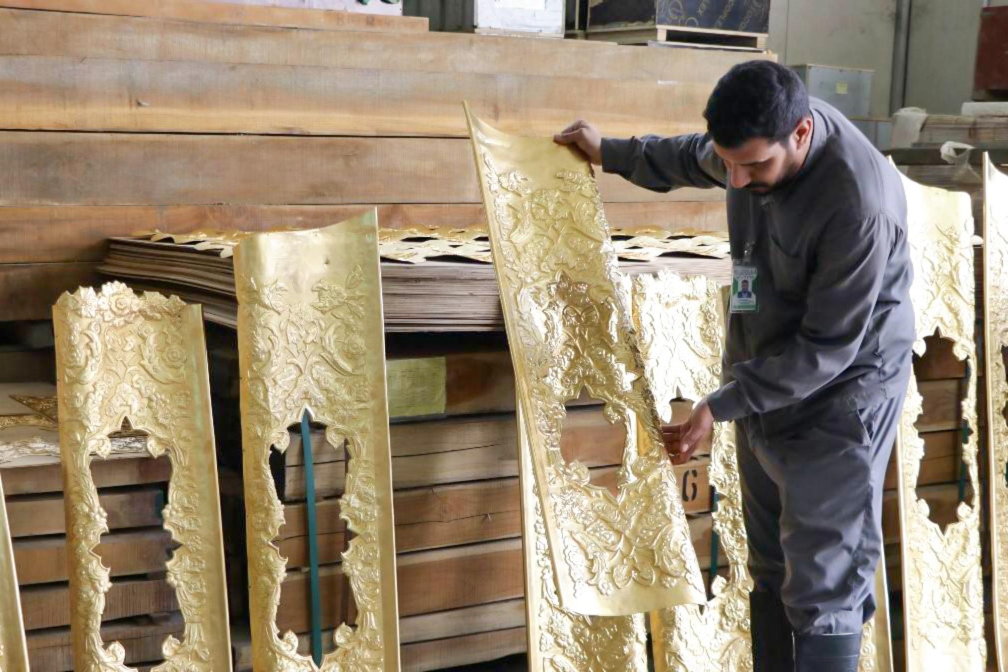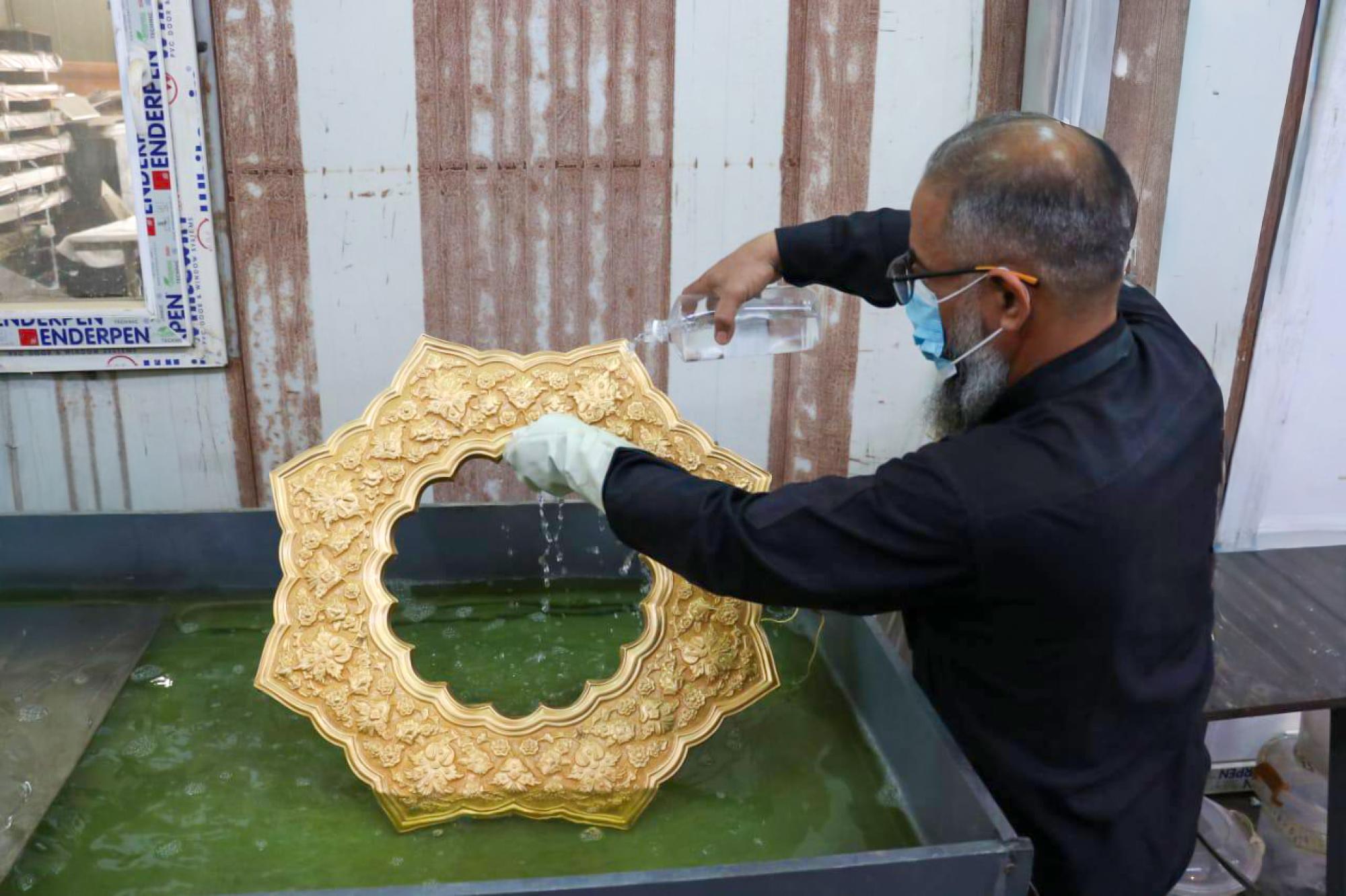 قسم صناعة الشبابيك يواصل أعمال تذهيب باب السيدة أم البنين (عليها السلام) الجديد
