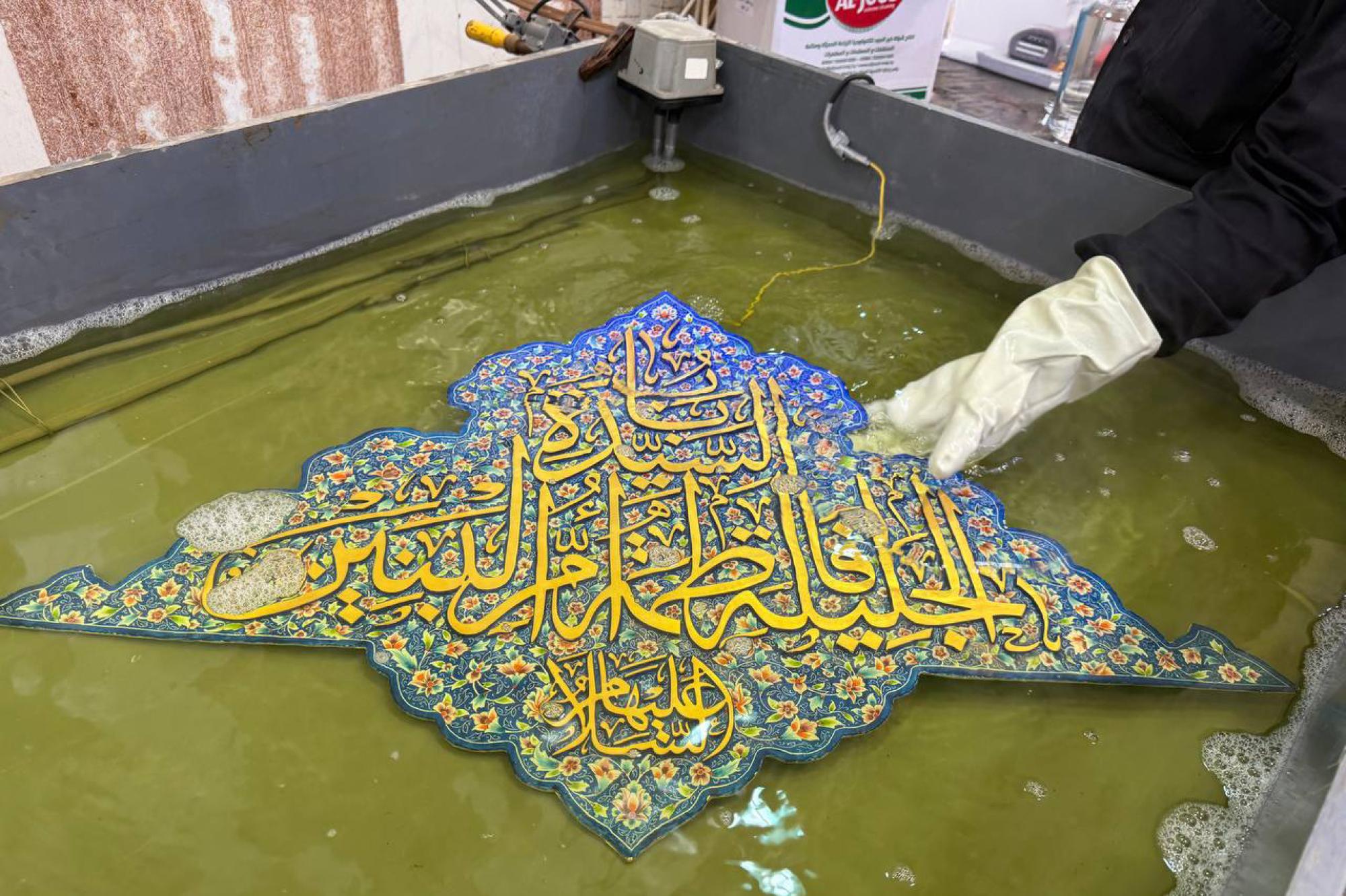 يواصل قسم صناعة شبابيك الأضرحة الشريفة وأبوابها في العتبة العباسية المقدسة أعمال تذهيب باب السيدة أم البنين (عليها السلام) الجديد الذي سينصب في حرم مرقد أبي الفضل العباس (عليه السلام). وقال رئيس القسم السيد ناظم الغرابي: إنَّ "أعمال تذهيب باب السيدة أم البنين (عليها السلام) الجديد شارفت على الانتهاء، وتتمثل بعملية الطلاء بمادة الذهب عيار 24، ويتميز الباب بتصميم فني فريد يعكس الطابع الإسلامي الأصيل وسيتم تنصيبه في الحرم الشريف مقابل باب الإمام محمد الجواد (عليه السلام)". وأضاف أنّ "ارتفاع الباب يبلغ 4.10م وعرضه 3.10م، ويتكون من درفتين يزن مجموعهما أكثر من طن، صُمِّم بنقوش نباتية وكتابات دقيقة تُظهر الحرفية الفنية والإتقان في العمل، ويعلو الباب قوس مزخرف بارتفاع متر واحد".