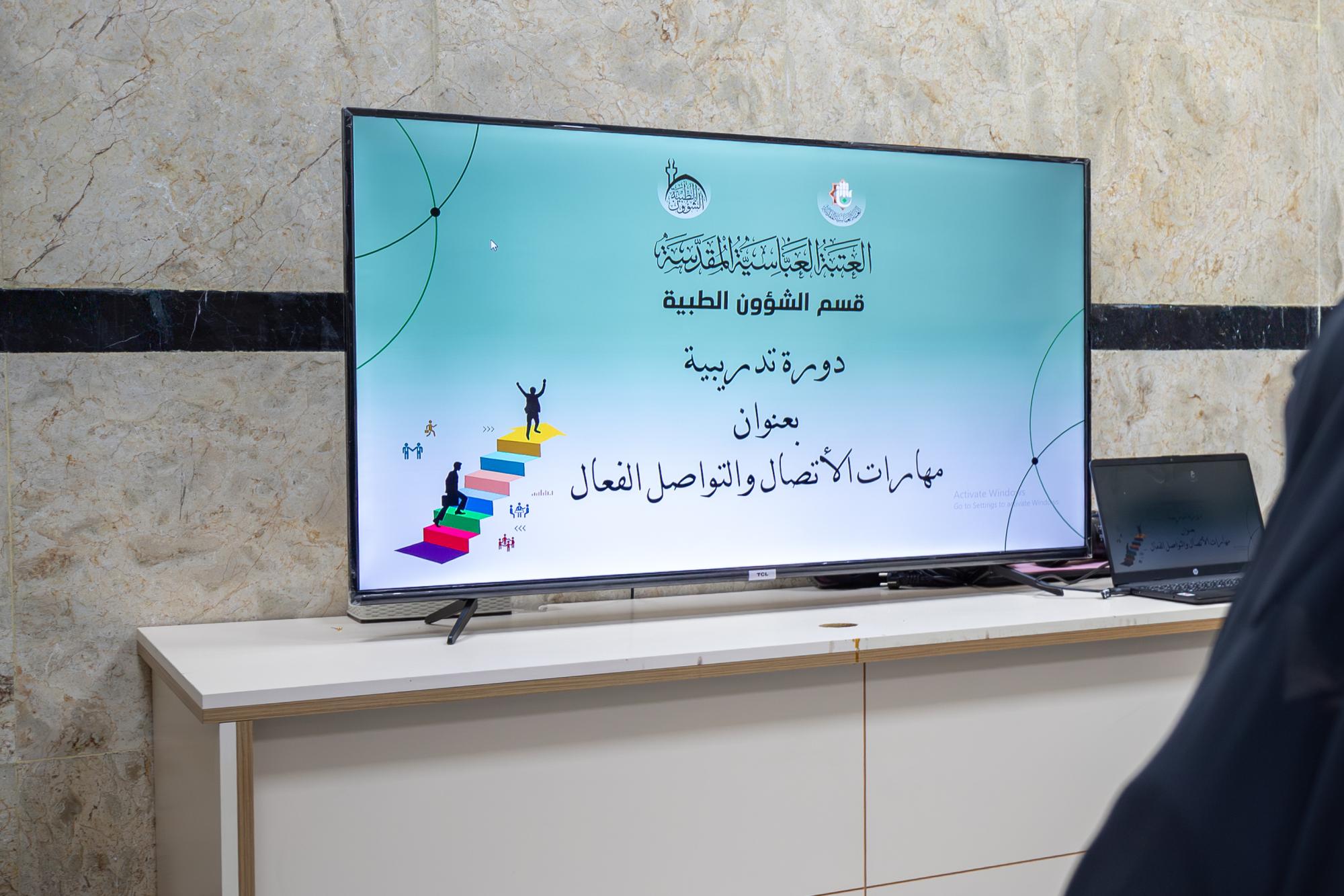 أقام قسم الشؤون الطبية في العتبة العباسية المقدسة دورة تدريبية عن مهارات الاتصال والتواصل الفعال، استهدفت ملاكاته النسوية ومتطوعات من محافظة المثنى. وقالت رئيسة القسم، الدكتورة هيفاء التميمي: إنّ "القسم نظم هذه الدورة لملاكاته العاملات في مركز الصديقة الطاهرة (عليها السلام) النسوي التابع له، إضافة إلى متطوعات من محافظة المثنى، وذلك في مجمع السيد جعفر الحلي الصحي، بمشاركة 15 متدربة، بواقع 7 متطوعات من محافظة المثنى، و8 من ملاكات القسم الطبية". وأضافت أنّ "الدورة تهدف إلى تعزيز مهارات التواصل الفعال، وتطوير آليات التعامل مع الزائرات، ورفع مستوى تقديم الخدمة الصحية بأسلوب مهني وإنساني". وبيّنت التميمي أنّ "الدورة تُقام يومين من كل أسبوع ضمن برنامج تدريبي متكامل، يسعى إلى تأهيل المتطوعات والملاكات الطبية عمليًّا ونظريًّا، بما يسهم في رفع كفاءتهن المهنية، وتوحيد أساليب العمل، وتحسين جودة الخدمات المقدمة للزائرات، بما ينسجم مع الضوابط والتعليمات المعتمدة في العتبة المقدسة".