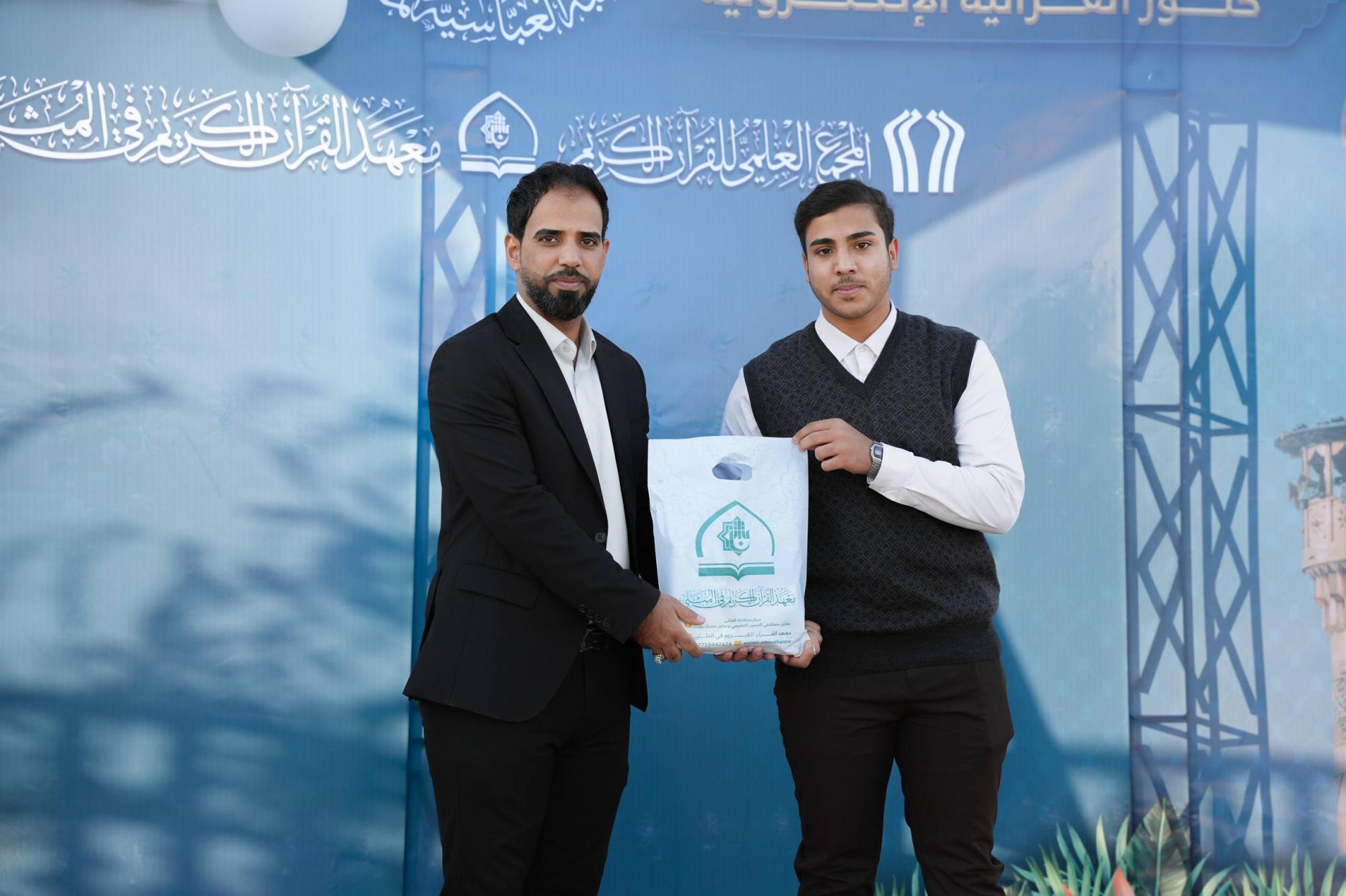 اختتم المجمع العلمي للقرآن الكريم في العتبة العباسية المقدسة مسابقة "كنوز القرآنية الإلكترونية"، تزامناً مع ذكرى ولادة الإمام محمد الباقر والإمام علي الهادي (عليهما السلام). وافتتحت فقرات حفل الختام بتلاوة مباركة من آيات الذكر الحكيم تلاها القارئ حسن الخالدي، تلتها كلمة لمعهد القرآن الكريم في المثنى ألقاها معاون مدير المعهد السيد أحمد الموسوي، أكد فيها أهمية هذه المسابقات في ترسيخ الارتباط بالقرآن الكريم، ودورها في تشجيع الطاقات القرآنية على مواصلة مسيرتها العلمية والتربوية.