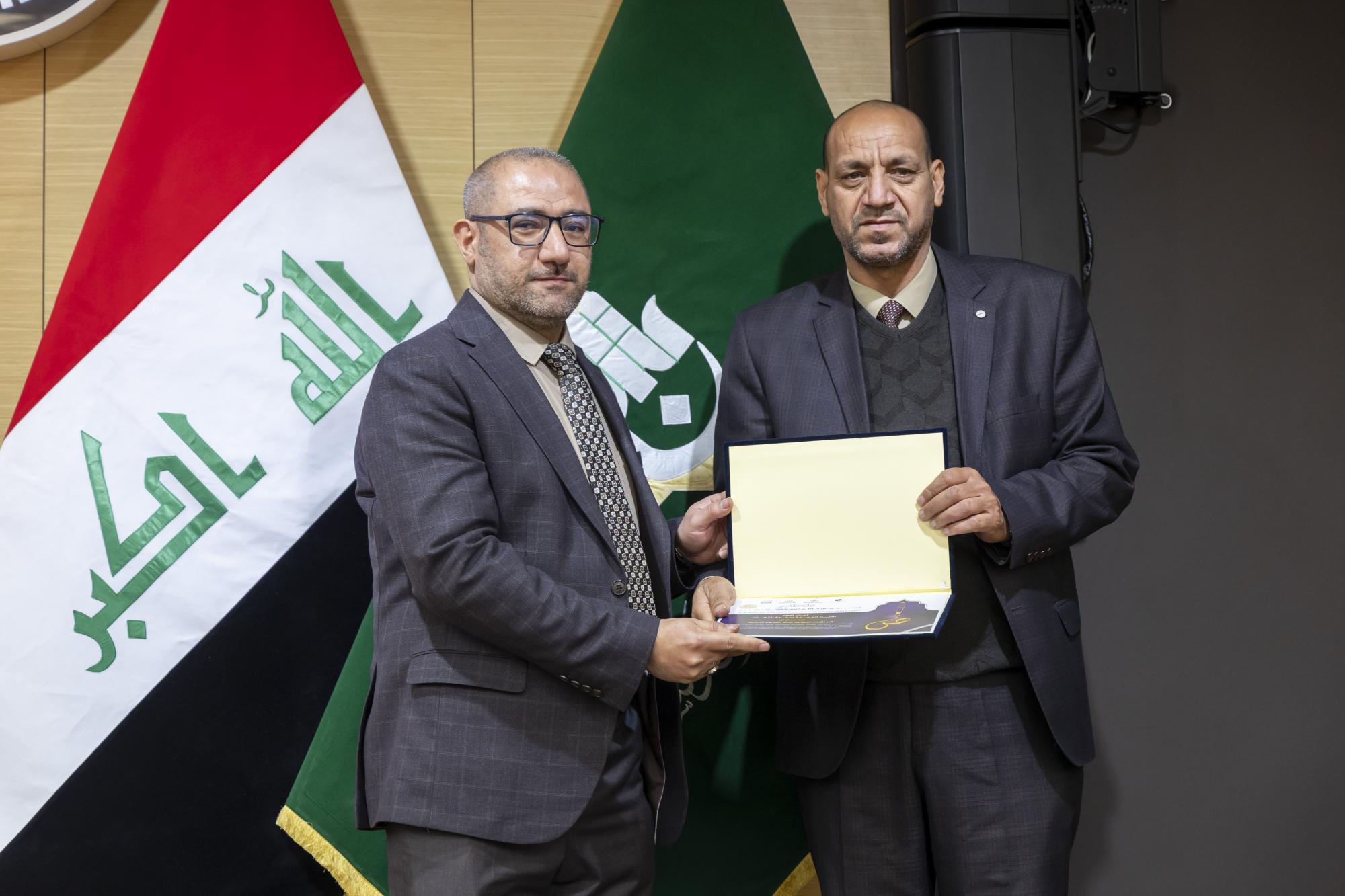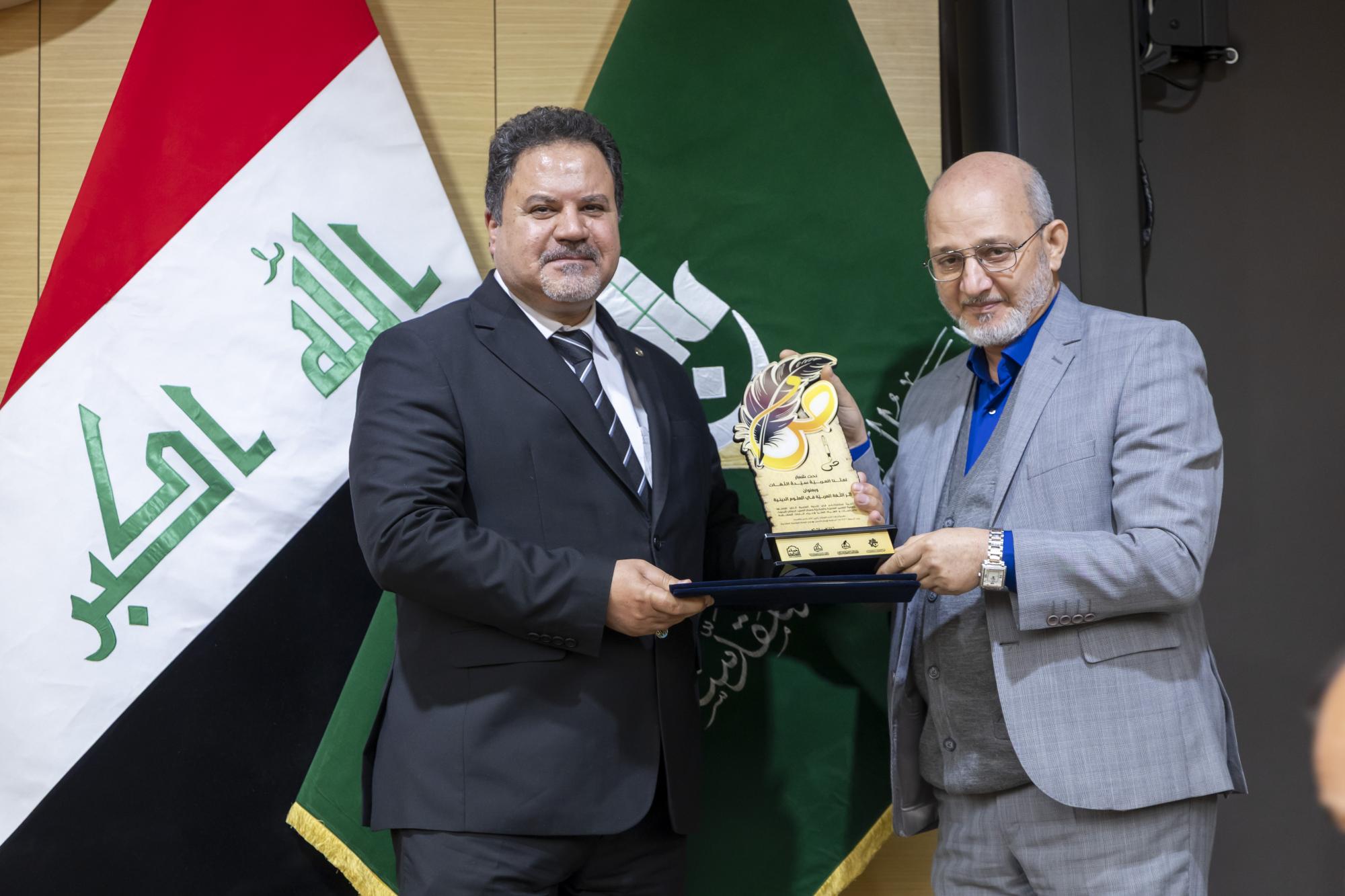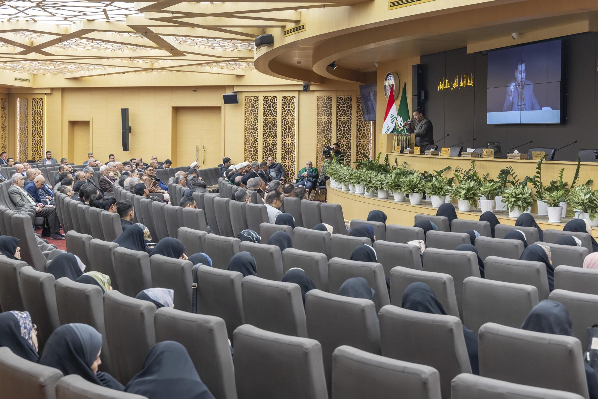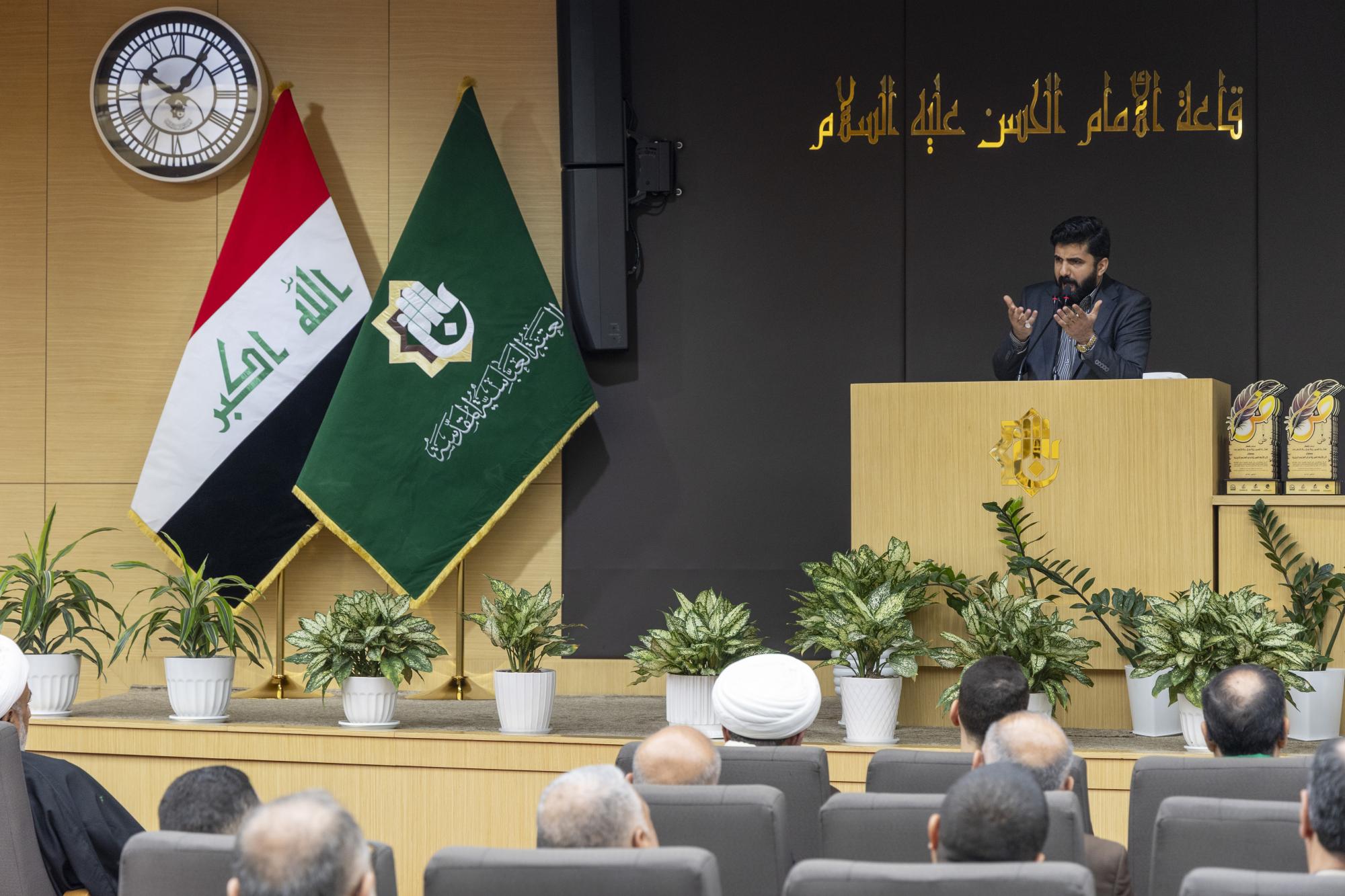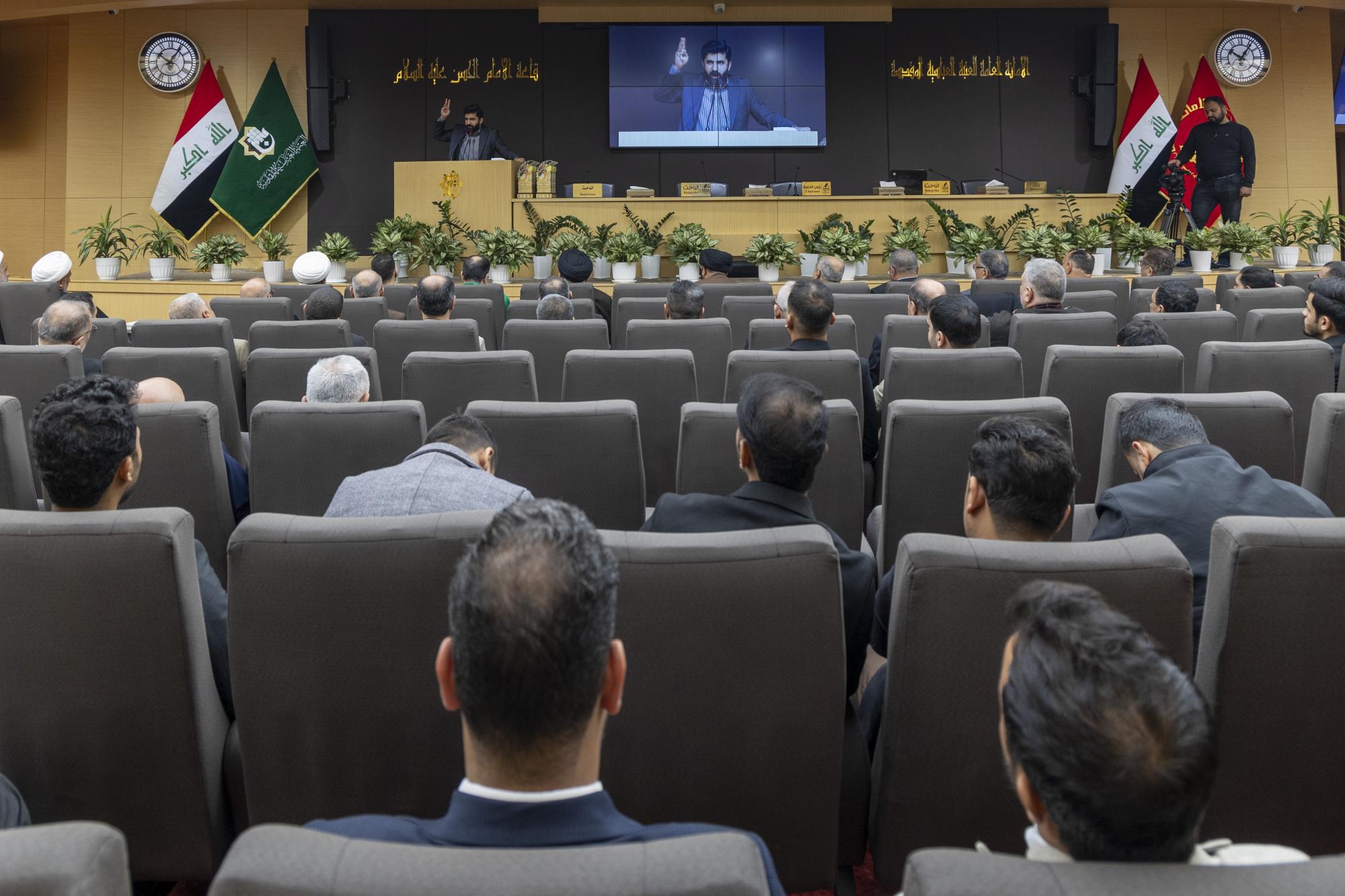 عقدت جمعية العميد العلمية والفكرية برعاية الأمانة العامة للعتبة العباسية المقدسة، ندوة علمية احتفاء باليوم العالمي للغة العربية. ونظمت الندوة الجمعية بالتعاون مع مركز العميد الدولي للبحوث والدراسات التابع لقسم الشؤون الفكرية والثقافية، والهيأة العليا لإحياء التراث في العتبة المقدسة. وأُقيمت الندوة في قاعة الإمام الحسن (عليه السلام) داخل العتبة العباسية المقدسة تحت شعار (لغتنا العربية سيدة اللغات)، وبعنوان (أثر اللغة العربية في العلوم الدينية)، وبحضور عدد من مسؤولي العتبة المقدسة إلى جانب الباحثين والمختصين. واستُهلت فعاليات الندوة بتلاوة آيات عطرة من القرآن الكريم، وقراءة سورة الفاتحة ترحمًا على أرواح الشهداء والعلماء، وقراءة النشيد الوطني ونشيد (لحن الإباء)، تلتها كلمة الأمانة العامة للعتبة المقدسة، ألقاها الدكتور سرحان جفات، وأعقبتها كلمة جمعية العميد العلمية والفكرية، ألقاها الدكتور علي المصلاوي. قال رئيس الجمعية، الدكتور رياض طارق العميدي: إنّ ندوة الاحتفاء العالمي بيوم اللغة العربية تضمنت مناقشة مجموعة من البحوث التي بيّنت أهمية اللغة العربية بوصفها الوعاء الأساسي للوعي الديني والفكري والثقافي، مشيرًا إلى أنّ الندوة ركزت على إبراز مكانة اللغة في مختلف العلوم الشرعية والفكرية. وأضاف أنّ الندوة تناولت محاور عدة، أبرزها أهمية اللغة في علوم القرآن والحديث وأصول التفسير، وتهدف إلى تعزيز مكانة اللغة العربية وتحقيق التوافق بين أصالتها والتجديد، كونها لغة حية قائمة على التطوير المستمر، مؤكدًا أنّ الندوة شهدت إلقاء عدد من التوصيات الخاصة بيوم اللغة العربية. من جانبه قال أحد ملاكات الهيأة العليا لإحياء التراث، الشيخ وسام فارس الخاقاني: إنّ دور الهيأة العليا في الندوة العلمية الخاصة بيوم اللغة العربية تمثل في التواصل مع الباحثين والأساتذة والإشراف على البحوث العلمية التي شاركت ضمن الجلسة البحثية.