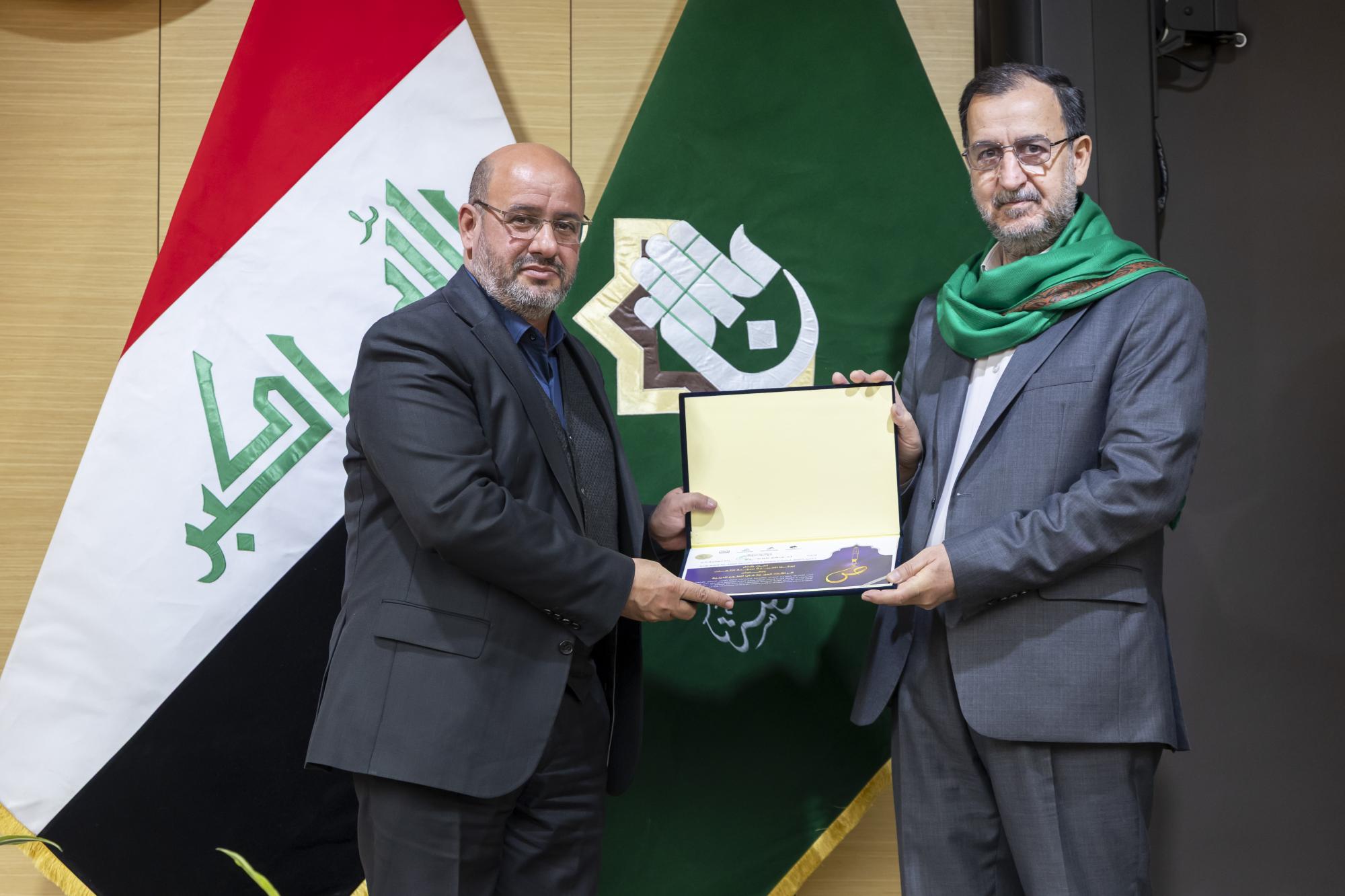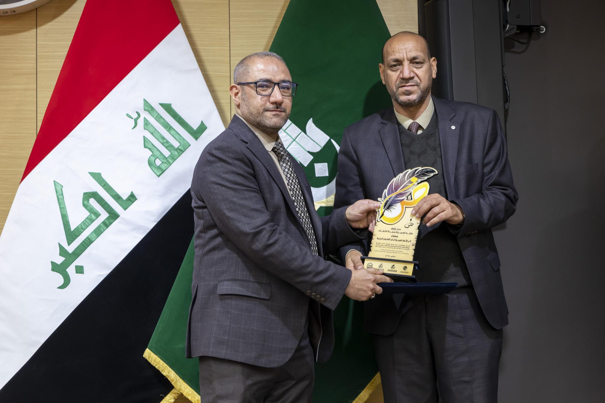 وفي ختام الندوة العلمية كرّم عضو مجلس إدارة العتبة العبّاسية المقدّسة السيد محمد الأشيقر، ورئيسُ جمعيّة العميد العلمية والفكرية الدكتور رياض طارق العميدي، والدكتور سرحان جفات، الباحثين والمساهمين في فعّالياتها.