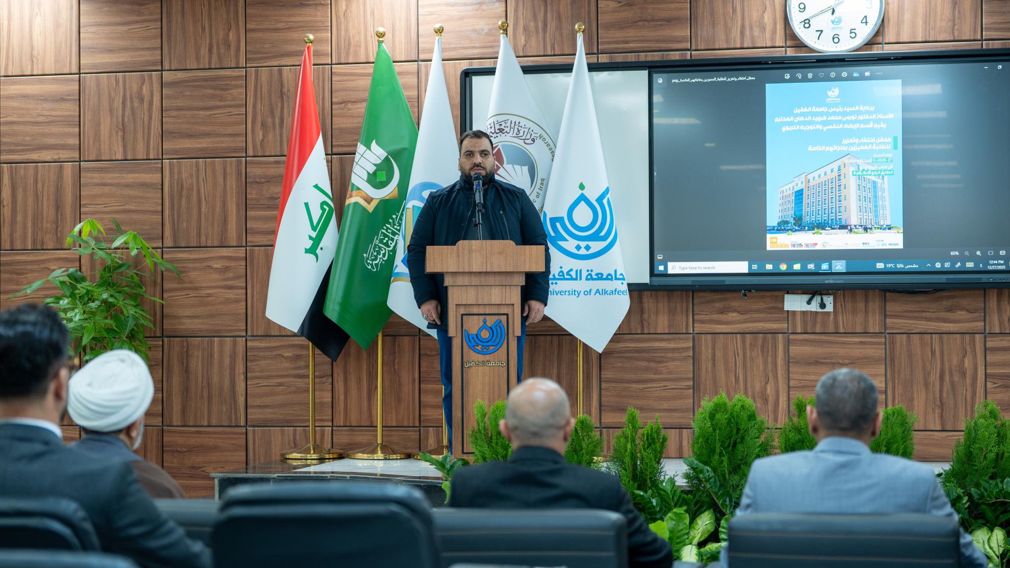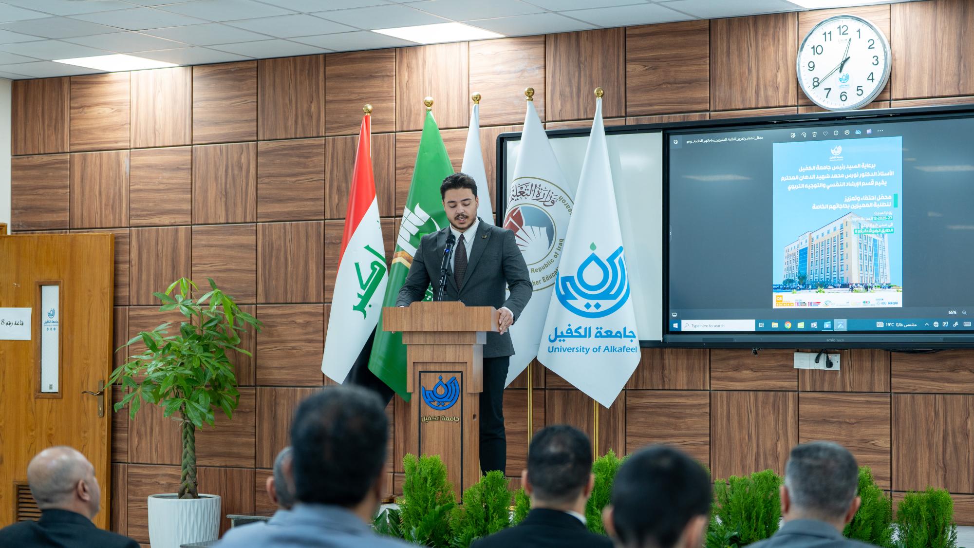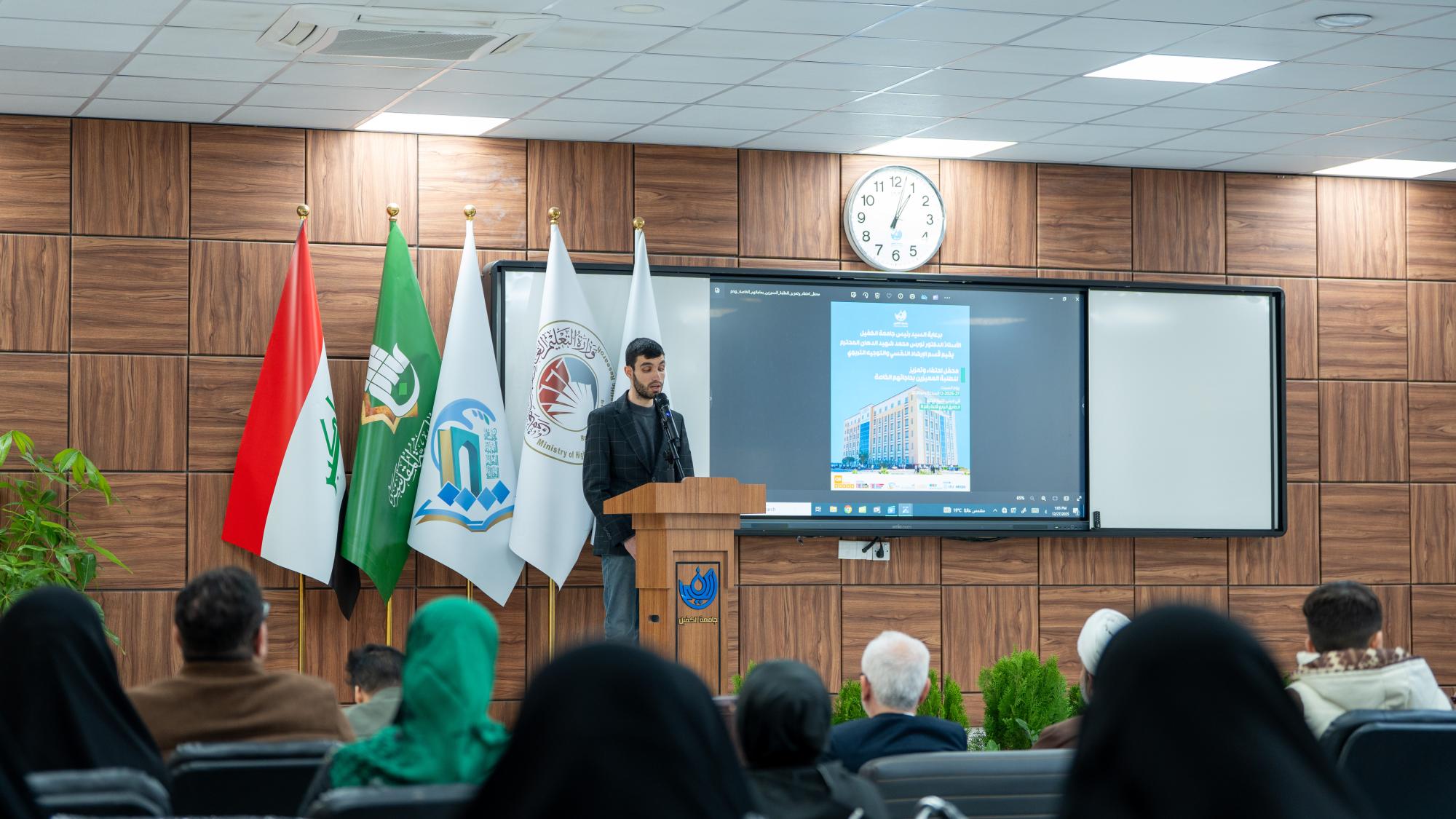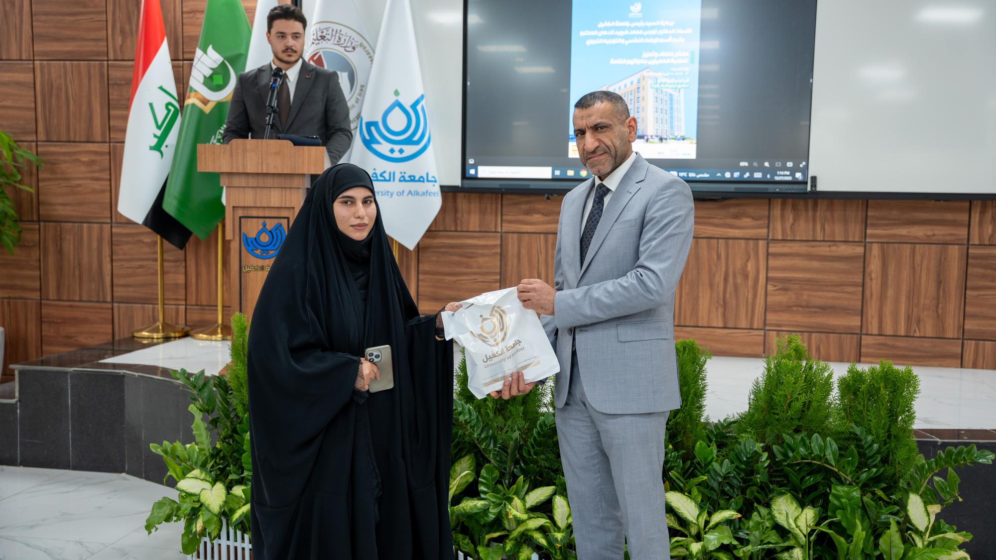 أقام قسم الإرشاد النفسي والتوجيه التربوي في جامعة الكفيل حفلًا تكريميًّا للطلبة المتميزين من ذوي الاحتياجات الخاصة. وحضر الحفل عمداء الكليات ومعاونوهم وعدد من موظفي الجامعة وطلبتها وذويهم، وتضمَّن كلمات توجيهية ركَّزت على أهمية الدعم النفسي والمعنوي، مستعرضة نماذج إنسانية مشرِّفة أثبتت حضورها الفاعل في المجتمع وأسهمت في خدمة الإنسانية رغم الإعاقات الجسدية. وشهد الحفل استضافة شخصيات مبدعة في مجالات متعددة منها تلاوة القرآن الكريم وإلقاء الشعر والعمل الأكاديمي وجميعهم من المكفوفين ليكونوا نماذج حيَّة وملهمة أمام طلبة الجامعة ورسالة واضحة بأن الإرادة والعزيمة قادرتان على تجاوز كل التحديات.