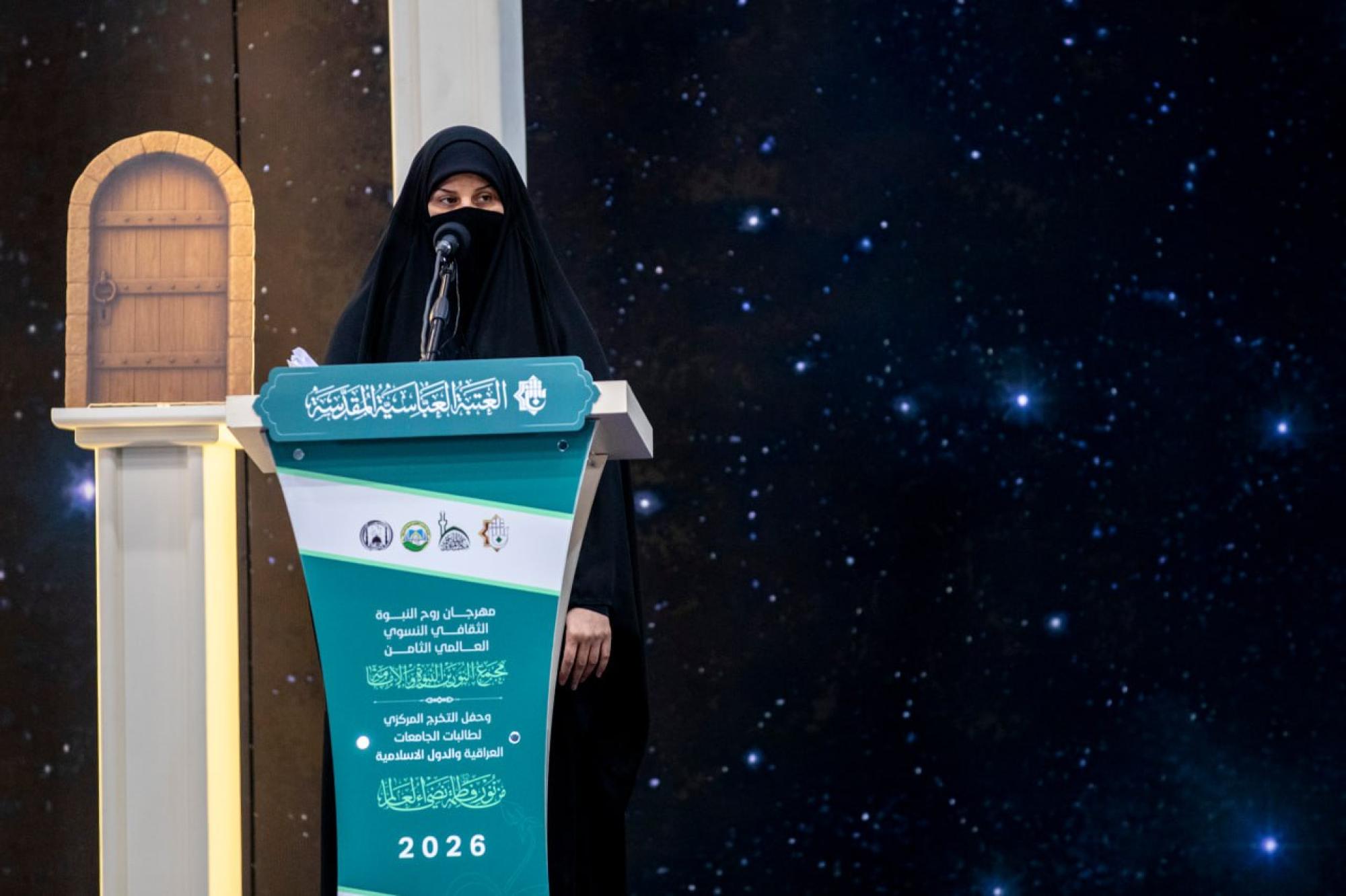 أطلقت العتبة العباسية المقدسة فعاليات مهرجان روح النبوة الثقافي النسوي العالمي بنسخته الثامنة، بمشاركة عربية ودولية. وتقيم المهرجان شعبة مدارس الكفيل الدينية النسوية التابعة لمكتب المتولي الشرعي للشؤون النسوية في العتبة المقدسة، ويستمر ثلاثة أيام، تحت شعار (فاطمة الزهراء -عليها السلام- مجمع النورين: النبوة والإمامة)، وبعنوان (فاطمة الزهراء -عليها السلام- بناء الوعي وإحياء القيم). وحضر فعاليات افتتاح المهرجان، المتولي الشرعي للعتبة العباسية المقدسة سماحة العلامة السيد أحمد الصافي، وأمينها العام السيد مصطفى مرتضى آل ضياء الدين، ومسؤولوها ورؤساء أقسامها، وشخصيات رسمية، وأكاديميات وباحثات ووفود نسوية من لبنان، وتونس، وإيران، وأفغانستان، وإندونيسيا، والكويت، والسعودية، وسلطنة عُمان، والبحرين. وافتُتح المهرجان بتلاوة آيات من الذكر الحكيم بصوت قارئ العتبتين المقدستين حيدر البزوني، تلتها قراءة سورة الفاتحة على أرواح شهداء العراق الأبرار، ثم عزف النشيد الوطني، إضافة إلى أنشودة العتبة العباسية المقدسة (لحن الإباء). وتضمنت فعاليات افتتاح المهرجان برنامجًا ثقافيًّا وفنيًّا متكاملًا، استُهل بكلمة للمتولي الشرعي للعتبة المقدسة سماحة العلامة السيد أحمد الصافي، وتقديم أوبريت (الثقلين) القرآني، وعرض فيلم وثائقي سلط الضوء على أبرز النشاطات والبرامج وجهود الشعب والمراكز النسوية في العتبة العباسية المقدسة في مجالات التوعية والثقافة والعمل المجتمعي. وشملت الفعاليات إلقاء قصيدة شعرية للشاعرة تهاني الصبيح من السعودية جاءت بعنوان (على عنق زجاجة لم يخدشها الضوء)، إلى جانب تكريم عدد من عوائل الشهداء؛ تثمينًا لتضحياتهم وتأكيدًا على مكانتهم في الذاكرة الوطنية والمجتمعية.