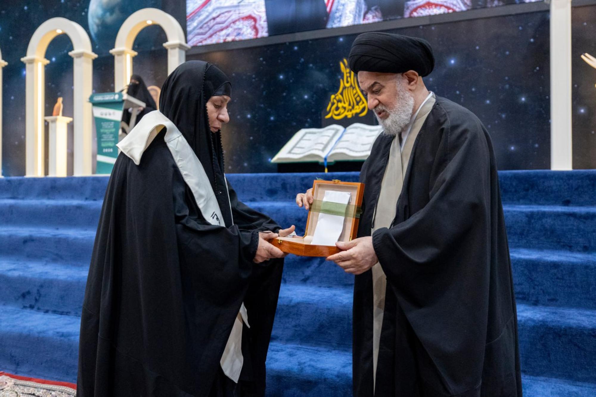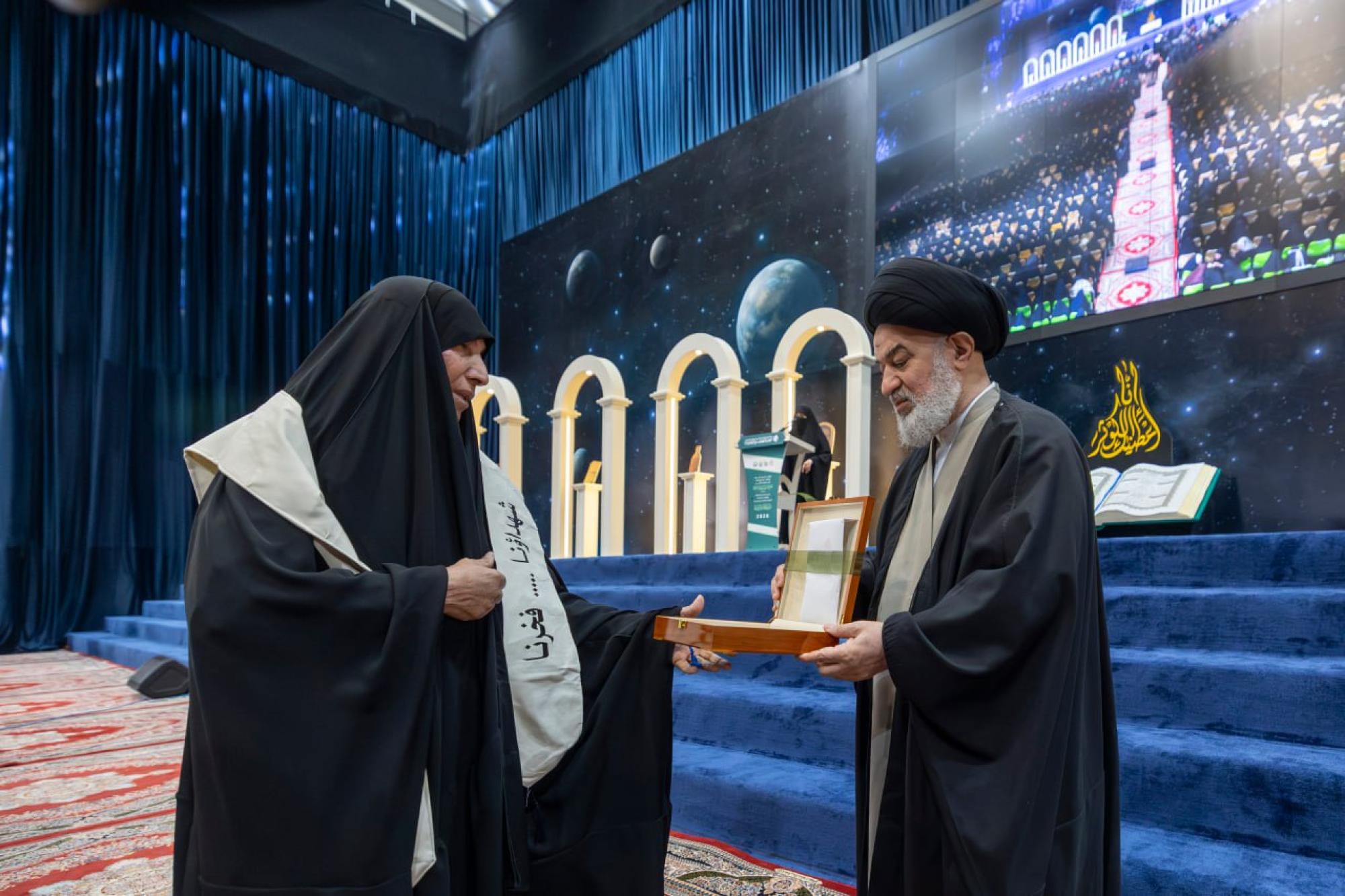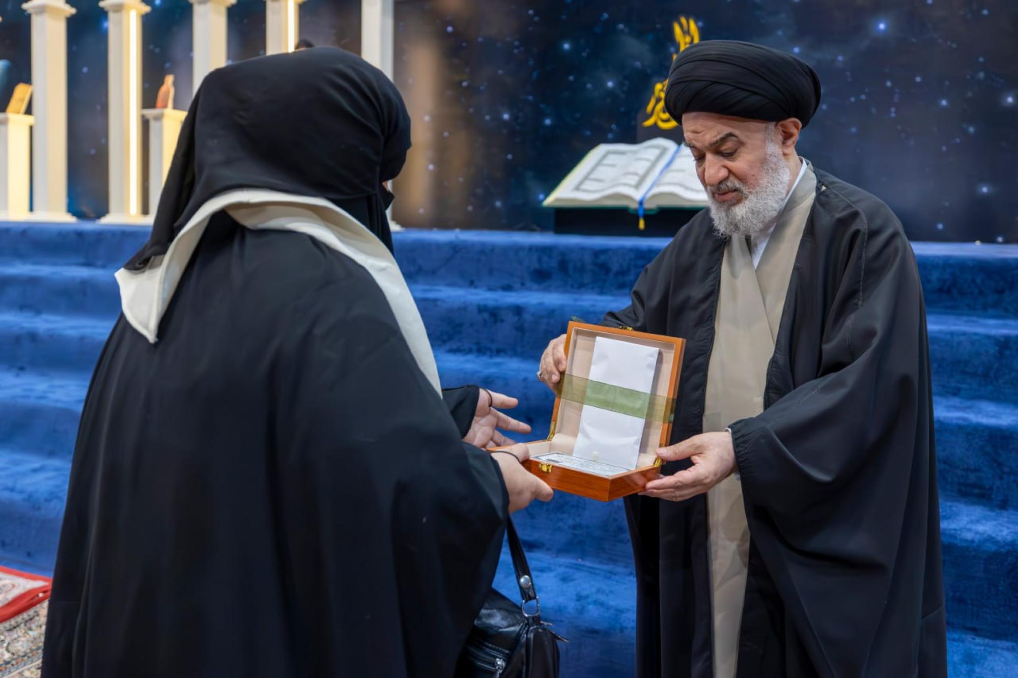 سماحة السيد الصافي يكرم عددًا من عوائل الشهداء ضمن فعاليات مهرجان روح النبوة النسوي العالمي الثامن