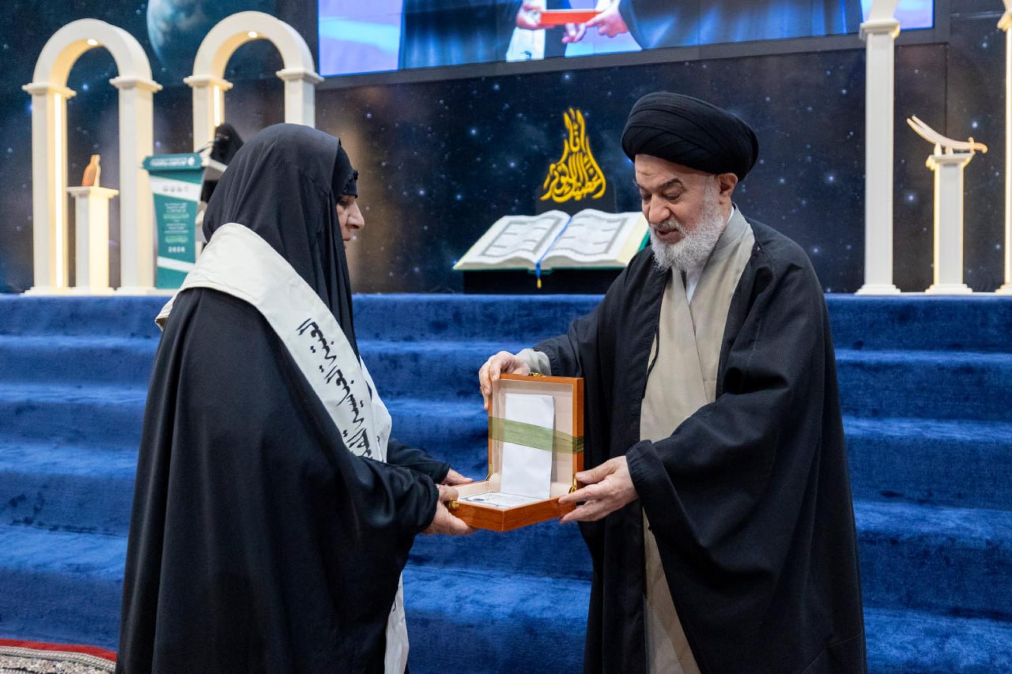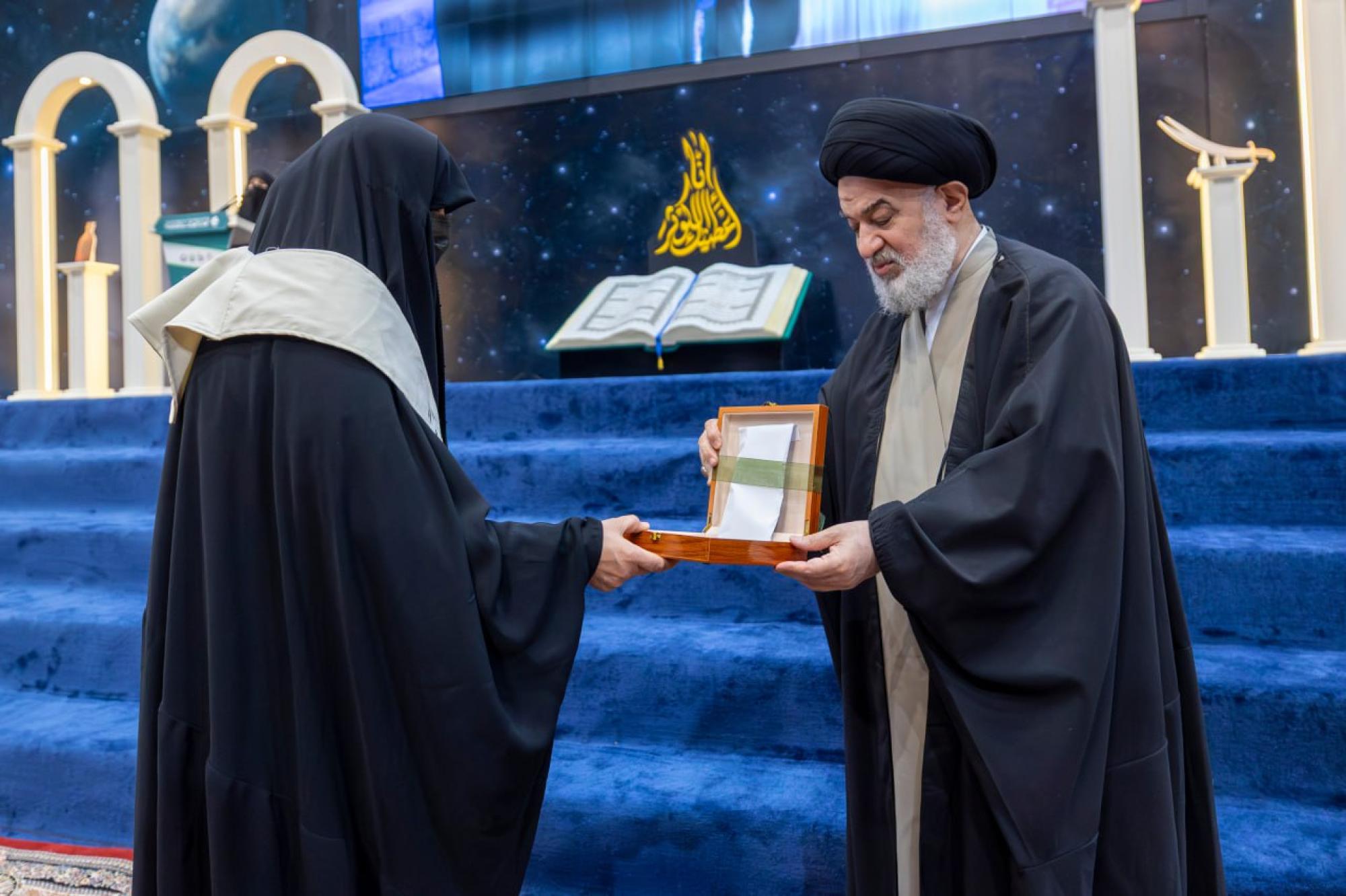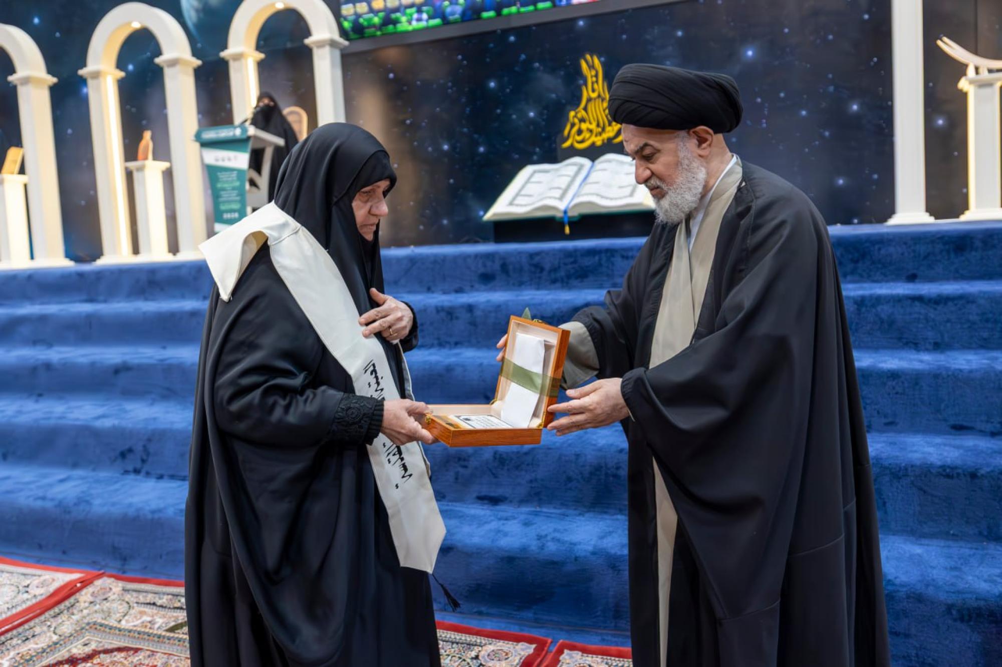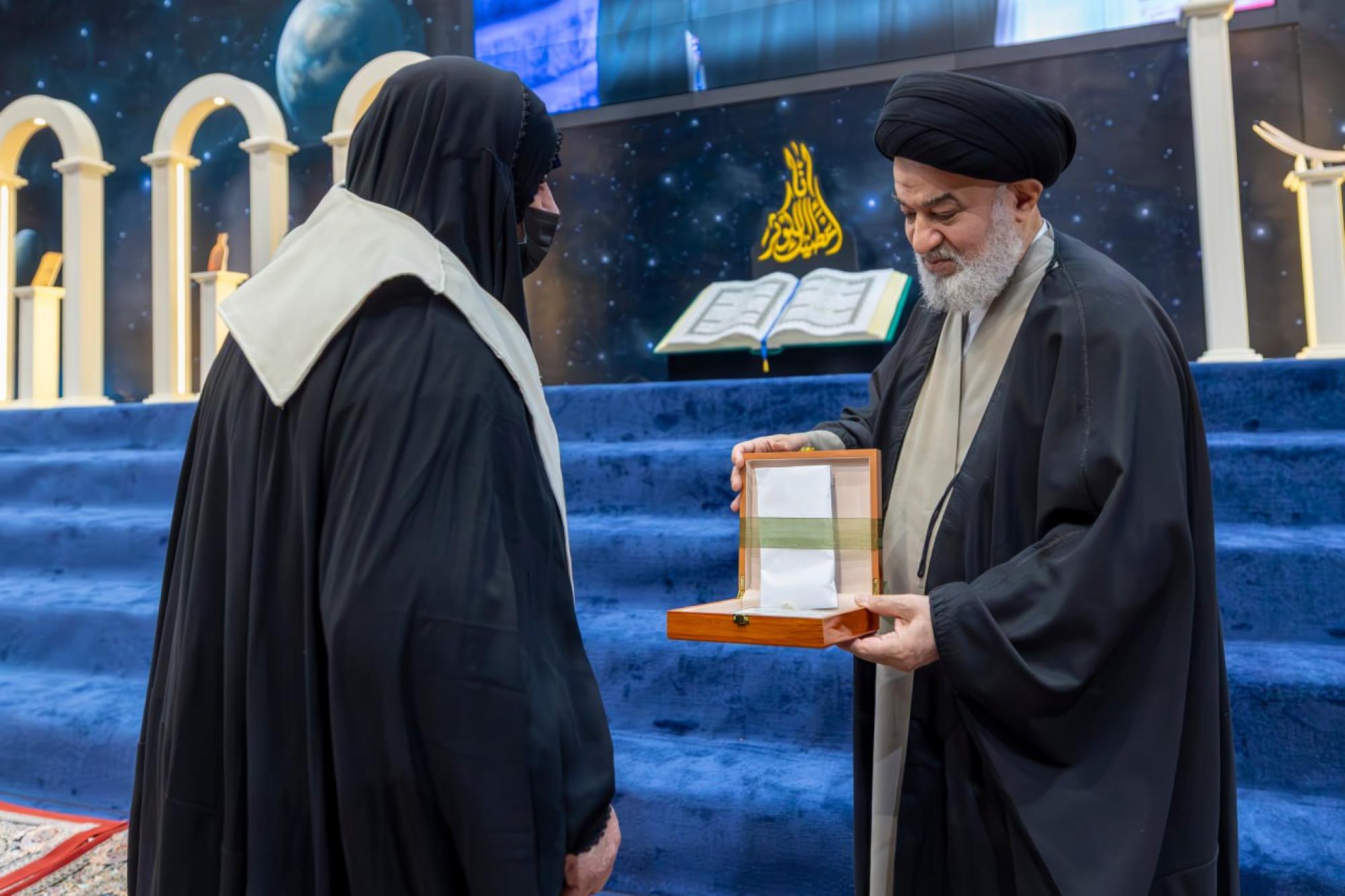 سماحة السيد الصافي يكرم عددًا من عوائل الشهداء ضمن فعاليات مهرجان روح النبوة النسوي العالمي الثامن