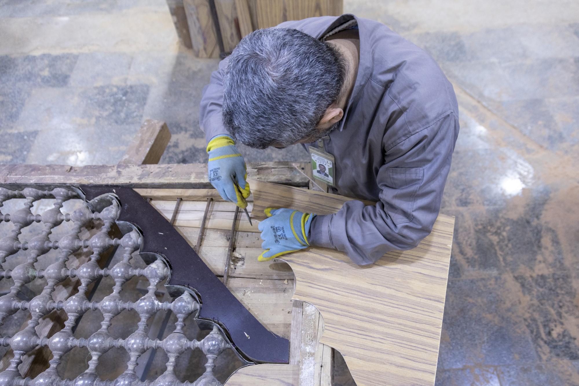 قسم صناعة الشبابيك يباشر أعمال إدامة الشباك القديم لمرقد الإمامين العسكريين (عليهما السلام)