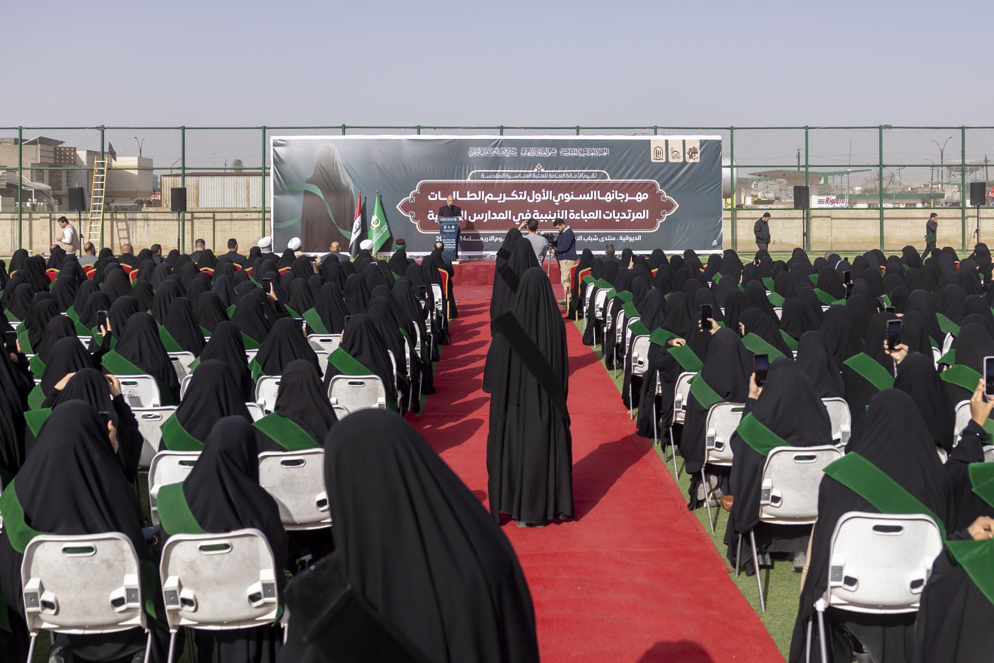 على وَفقِ جوابنا السابق، فإنّ القضية محسومة، لا يمكن أن ننال الجزاء الطيب ونكون مع النبيين والصديقين والشهداء والصالحين، إلّا إذا التزمنا بالواجبات الشرعية، ومنها الحجاب. فهنيئًا لكنّ أيتها العفيفات أن سارت أقدامكنّ على الصراط الذي سيودي بكن إلى ذلك الجزاء، كي تكونن ممن ينطبق عليهن وصف القرآن الكريم "وَحَسُنَ أُو۟لَـٰۤىِٕكَ رَفِیقࣰا": وهنيئًا بآبائكن وأمهاتكن على هذه العاقبة المشرّفة في الدنيا، التي ستودي بهما وبكنّ إلى شرف الآخرة - إن شاء الله تعالى -. والشكر موصول إلى كل الأيادي التي أسهمت في إنجاح هذه الفعالية، من مديرية تربية الديوانية، وإدارة المدارس ومعتمدي المحافظة، والخيّرين والوجهاء، فتكريم 1000 طالبة من مرتديات العباءة في هذه المحافظة العزيزة، محافظة الديوانية الكريمة، من قِبل العتبة العباسية المقدسة لم يكن لولا تظافر جهود الجميع، هذا النشاط الذي تُشرف عليه أمانة العتبة المطهرة متمثلة بقسم العَلاقات العامّة فيها نشاط واسع وممتد بحيث يتنقل بين محافظات بلدنا العزيز تنقل النحل بين رحيق الأزهار في بساتين وطننا العامر؛ من أجل إشاعة العفاف، وإذاعة الستر؛ فبهما يفتخر المجتمع، ويرتقي، فرُقي المجتمعات، على وَفقِ القاعدة الإلهية، يُقاس بطاعة المجتمعات لله ورسوله، وعفّة أهلها ولا سيّما بناتها. الحفل الكريم ... وفي الختام أنقل إليكم سلام سماحة المتولّي الشرعي للعتبة العباسية المقدسة وتحاياه ودعاءه، وكذا تحايا ودعاء الأمانة العامة للعتبة المطهرة، بأن يديم عليكم الباري جلّ في علاه أمنه وأمانه وتوفيقاته. أقول قولي هذا وأستغر الله لي ولكم والسلام عليكم ورحمة اللٰه وبركاته.