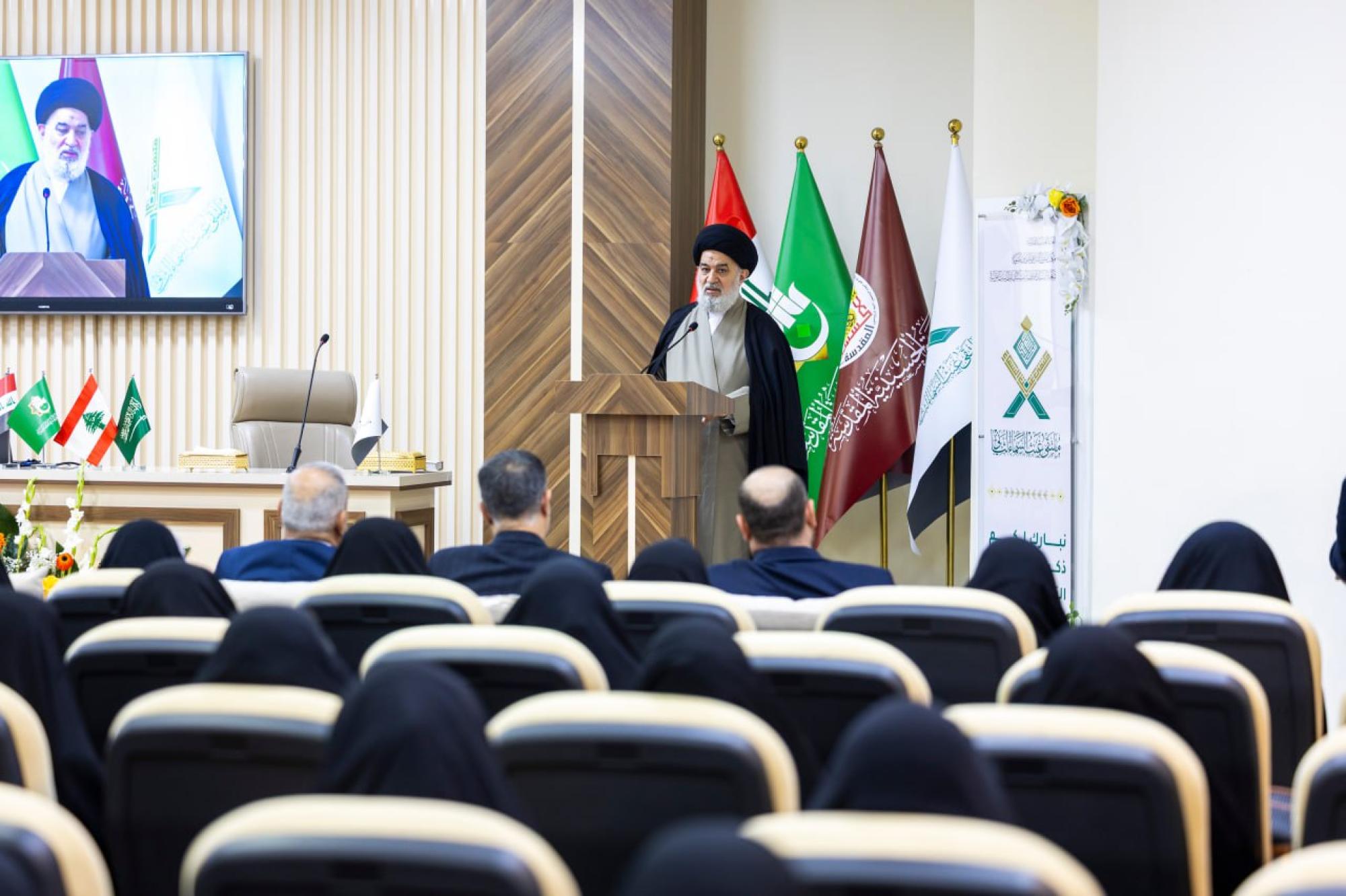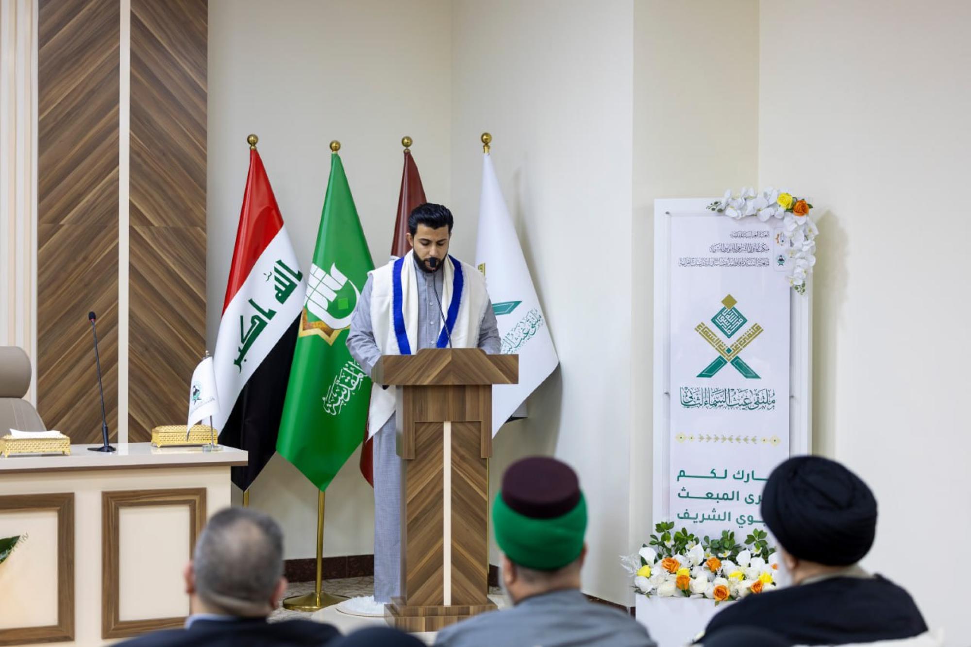 اختتمت العتبة العباسية المقدسة فعاليات ملتقى غيث السماء القرآني النسوي السنوي الثاني، في مركز الصديقة الطاهرة (عليها السلام). ونظمت الملتقى شعبة فاطمة بنت أسد (عليها السلام) للدراسات القرآنية التابعة لمكتب المتولي الشرعي للشؤون النسوية في العتبة المقدسة، تحت شعار (بين الوحي ووفاء خديجة بداية الرحمة للعالمين)، تزامنًا مع ذكرى المبعث النبوي الشريف، واحتفاءً باليوم الوطني للقرآن الكريم. وتضمّنت فعاليات الملتقى كلمة للمتولّي الشرعي للعتبة المقدسة سماحة العلّامة السيد أحمد الصافي، وعرض فيلم وثائقي بعنوان (وِقاء)، وآخر عن الحافظة بتول أسعد من ذوي الاحتياجات الخاصة، إضافةً إلى إلقاء قصيدة شعرية للشاعر محمد الياسري، وقراءة أنشودة سيد الكونين ألقتها فرقة (سنا الهدى). وشهدت فعاليات الملتقى مناقشة كتاب (المنهج النبوي في القيادة والتغيير) للكاتبة فاطمة الحمّاد من السعودية، الذي تناول دراسة تحليلية للمنهج الذي اعتمده رسول الله (صلى الله عليه وآله) في قيادة التغيير الاجتماعي، مستعرضًا الأسس والمبادئ التي أسهمت في إحداث تحول نوعي في المجتمع، إلى جانب تقديم أنشودة بعنوان (سيد الكونين) تناولت مدح رسول الله محمد (صلّى الله عليه وآله) والبعثة النبوية الشريفة. كما تضمنت الفعاليات مناقشة أربعة بحوث، الأوّل للباحثة طيبة إبراهيم، والثاني للباحثة زهراء كوراني، والثالث للباحثة زهراء حسام، والرابع للباحثة مريم حامد الخفاجي، وعرض فيلم عن النساء القرآنيات من كبار السن.