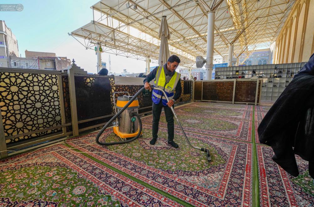 وعن الجهود المبذولة، تحدَّث الخادم زيد الخرسان من قسم الشؤون الخدمية للمركز الخبري قائلًا: " إنَّ الملاكات الخدمية باشرت بفرش أكثر من 30 ألف متر مربع من السجاد في أروقة الحرم الطاهر والطرق المؤدية إليه، بما ينسجم مع الزيادة المتوقعة في أعداد الزائرين خلال المناسبة" .