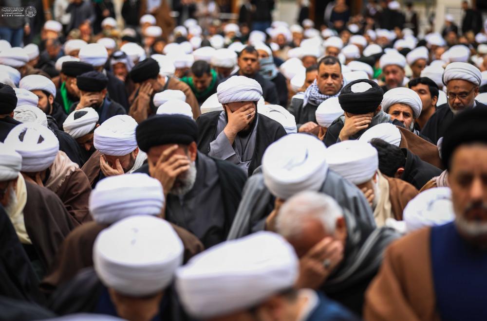 وجرت المراسم التي انطلقت من جامع الشيخ الطوسي (قدس سره) إلى مرقد المولى أمير المؤمنين (عليه السلام) بحضور العلماء الأعلام وطلبة وأساتذة الحوزة العلمية وشخصيات رسمية وأكاديمية ومجتمعية، و الأمين العامّ للعتبة العلويّة المقدّسة الخادم السيد عيسى الخرسان والخَدَم من أعضاء مجلس الإدارة ورؤساء الأقسام والعاملين في الحرم العلويّ المطهّر.