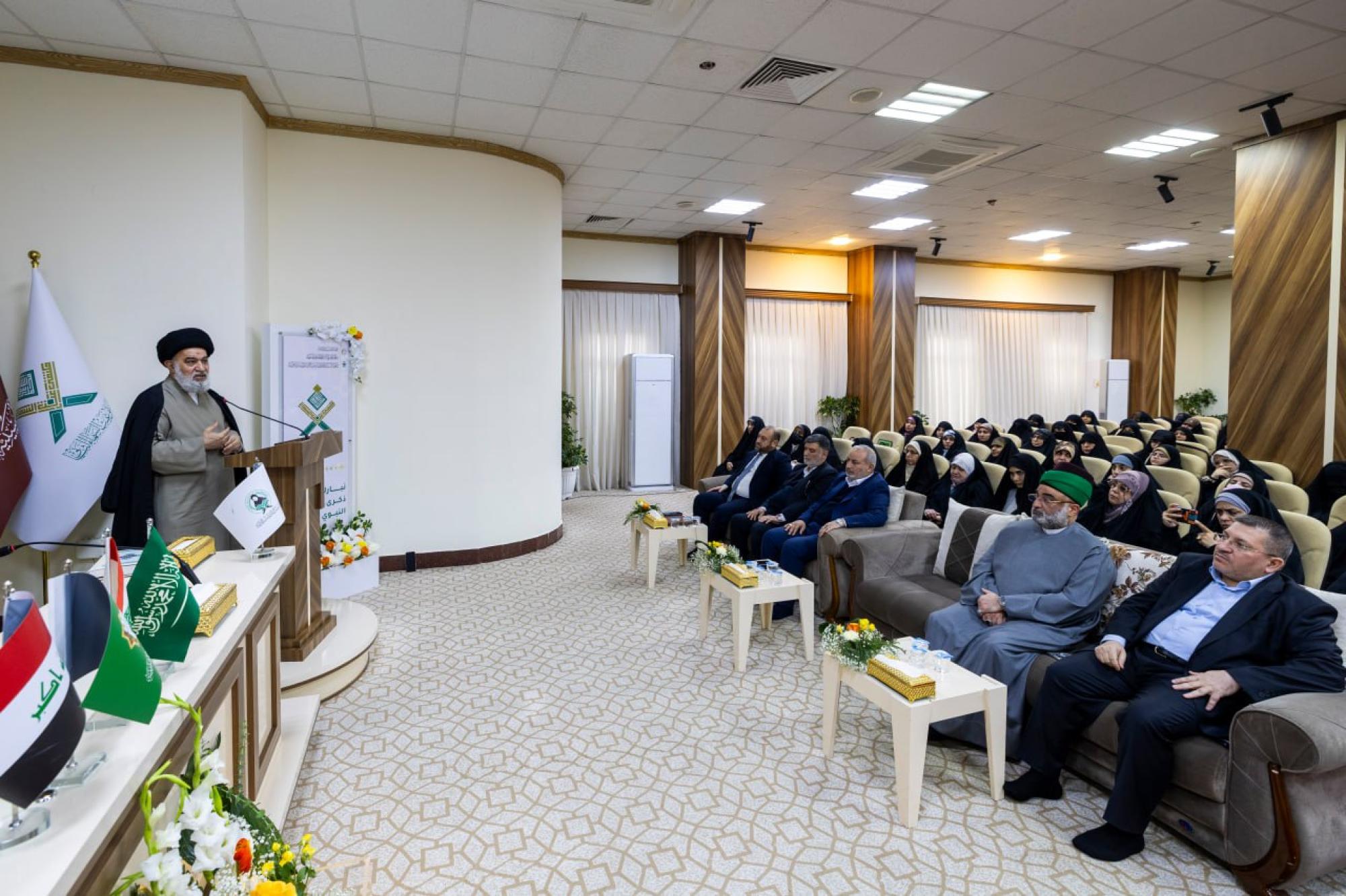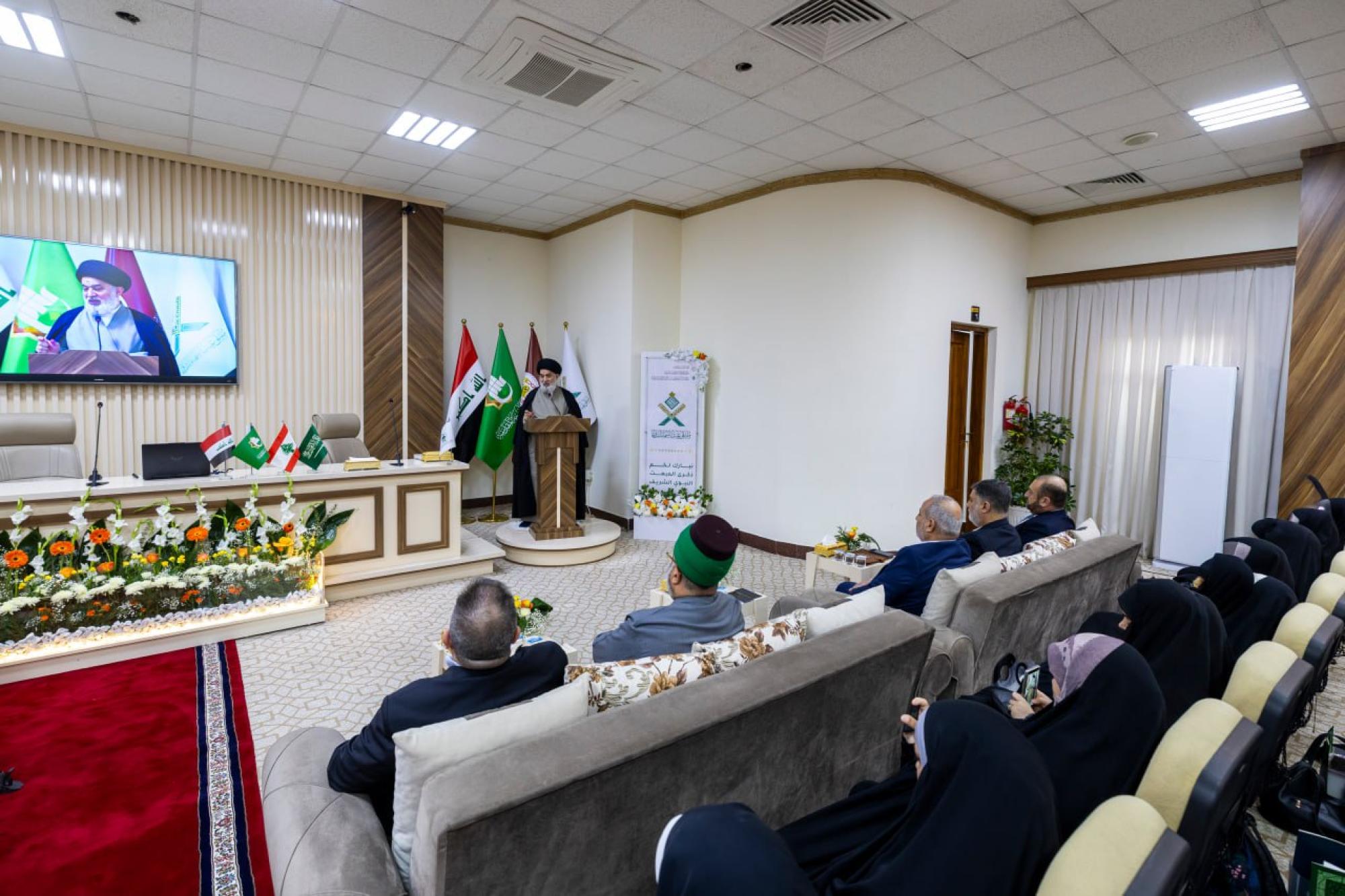 أكّد المتولّي الشرعي للعتبة العبّاسية المقدّسة سماحة العلّامة السيد أحمد الصافي، أنّ القرآن الكريم عظّم شخصيّة النبيّ (صلّى الله عليه وآله)، وكشف زيف ما أُلصِق بسيرته. جاء ذلك خلال كلمة سماحته في مُلتقى غيث السماء القرآنيّ النسويّ الثاني، الذي نظّمته شعبةُ فاطمة بنت أسد (عليها السلام) للدراسات القرآنية، التابعة لمكتب المتولّي الشرعيّ للشؤون النسوية في العتبة العبّاسية المقدّسة، تحت شعار (بين الوحيِ ووفاءِ خديجةَ بدايةُ الرحمةِ للعالَمِين)، تزامُنًا مع ذكرى المبعث النبويّ الشريف، واحتفاءً باليوم الوطنيّ للقرآن الكريم. وبارك سماحته في مستهلّ حديثه للحاضرين ذكرى مناسبة المبعث المبارك وحلول هذا الشهر الكريم، داعيًا الله تبارك وتعالى أن يمنّ على الجميع بإخراجهم من الظلمات إلى النور. وبيّن سماحته أنّ الحديث عن القرآن واسعٌ وعميق، ولا يمكن الإحاطة به كلّه، لكنّ المناسبة تقتضي الحديث عن مسألة التأمّل فيه، وروايات أهل البيت (عليهم السلام) التي اهتمّت بالعقل، باعتبار أنّ أوّل ما خلق الله تعالى هو العقل، وهو أساس التكليف والمحاسبة. وأشار سماحته إلى عظمة مقام النبيّ (صلّى الله عليه وآله) التي لا يُمكن الإحاطة بها، وأنّ سيرته تعرّضت للتحريف وإلصاق ما لا يليق به، بينما القرآن الكريم هو الذي يبيّن مقامه الحقيقيّ ويعظّم شخصيّته. وتحدّث سماحته حول كيفيّة التعامل مع القرآن الكريم، مؤكّدًا أنّه كتاب ليس سهلًا في مضمونه وألفاظه ودقّته، وهناك تأخّر في فَهمِه بسبب ضعف المعرفة باللغة العربية وطرائق تفسيره، ما يتطلّب تطوير الفهم للّغة للتمكّن من فهم معانيه بشكلٍ صحيح. وتطرّق سماحته إلى كثرة المشاكل التاريخية والاجتماعية والسياسية، التي أدّت إلى التنازل شيئاً فشيئاً عن اللغة العربية إلى أن طغت اللغة الدارجة، وأصبحت هناك صعوبة في قراءته عند عامّة الناس. وجاء في نصّ الكلمة: بسم الله الرحمن الرحيم الحمد لله ربّ العالمين والصلاة والسلام على خير خلقه أبي القاسم محمّدٍ وعلى آله الطيّبين الطاهرين. قبل البدء أحبّ فقط أن أشخّص بعض العناوين التي هي عناوين واقعية، ابتداءً أودّ الترحيب بكم، فحضراتكم شرّفتمونا لكونكم حَللتُم ضيوفًا على أبي الفضل العباس(عليه السلام) وعلينا، -وأتكلّم عن نفسي إذ يفترض أن أكون خادمًا صغيرًا لأبي الفضل سلام الله عليه-، ولا شكّ أن الضيف له منزلةٌ أعلى من منزلة الخادم، فالرجاء من الضيوف الأعزّاء أن لا ينسونا من الدعاء، أسأل الله تعالى لكم دوام التوفيق، مبتَدِئاً بتحيّة الإسلام، فأقول: السلام عليكم جميعاً ورحمة الله وبركاته. أسعد الله أيّامكم بيوم المبعث المبارك في هذا الشهر الكريم، سائلين الله تبارك وتعالى أن يمنّ على الجميع بإخراجهم من الظلمات إلى النور، فإنّ هذه الرسالة هي التي جاء بها المصطفى (صلّى الله عليه وآله). واقعًا.. الحديث عن القرآن الكريم وما يتعلّق به، حديثٌ طويلٌ جدًّا، ولا نستطيع قطعاً أن نُلمّ ببعض ما فيه، فضلاً عن كلّه، لكنّ المناسبة تقتضي على الإنسان أن يتحدّث بما يستطيع، وأنا سأبدأ من مسألة التأمّل، طبعاً إذا يرجع الإخوة الأعزّاء إلى روايات أهل البيت (عليهم السلام) التي هي مشحونة بالاهتمام بالعقل، سيجد أنّها تشير إلى أن أوّل ما خلق الله تعالى هو العقل، إذ قال له: أقبـِلْ فأقبلَ، أدبِـرْ فأدبَرَ، ثمّ تبيّن الروايات أن الله تعالى يحاسب على العقل، وما أودعه إلّا في الكامِلِين من الناس، حتّى ورد أنّ النبيّ (صلّى الله عليه وآله) أنّه لم يكلّم الناس بكُنه عقله قطّ، لأنّ الناس قد لا تفهم ولا تقدر أن تستوعب معارف عقله، فنحن عندنا أنّه سيّد الرسل، ومقام النبيّ (صلّى الله عليه وآله) مقامٌ واسع جداً لا نستطيع قطعاً أن نحيط بشؤونه، وبالنسبة لنا فإنّ السيرة المباركة للنبيّ (صلّى الله عليه وآله) تحتاج الكثير من الغربلة، فكثيرٌ من الأمور قد أُلصِقت بالنبيّ وهو بريءٌ منها، في قِبال أننا نرى أنّ القرآن الكريم يعظّم هذه الشخصية العظيمة، ولعلّنا ذ