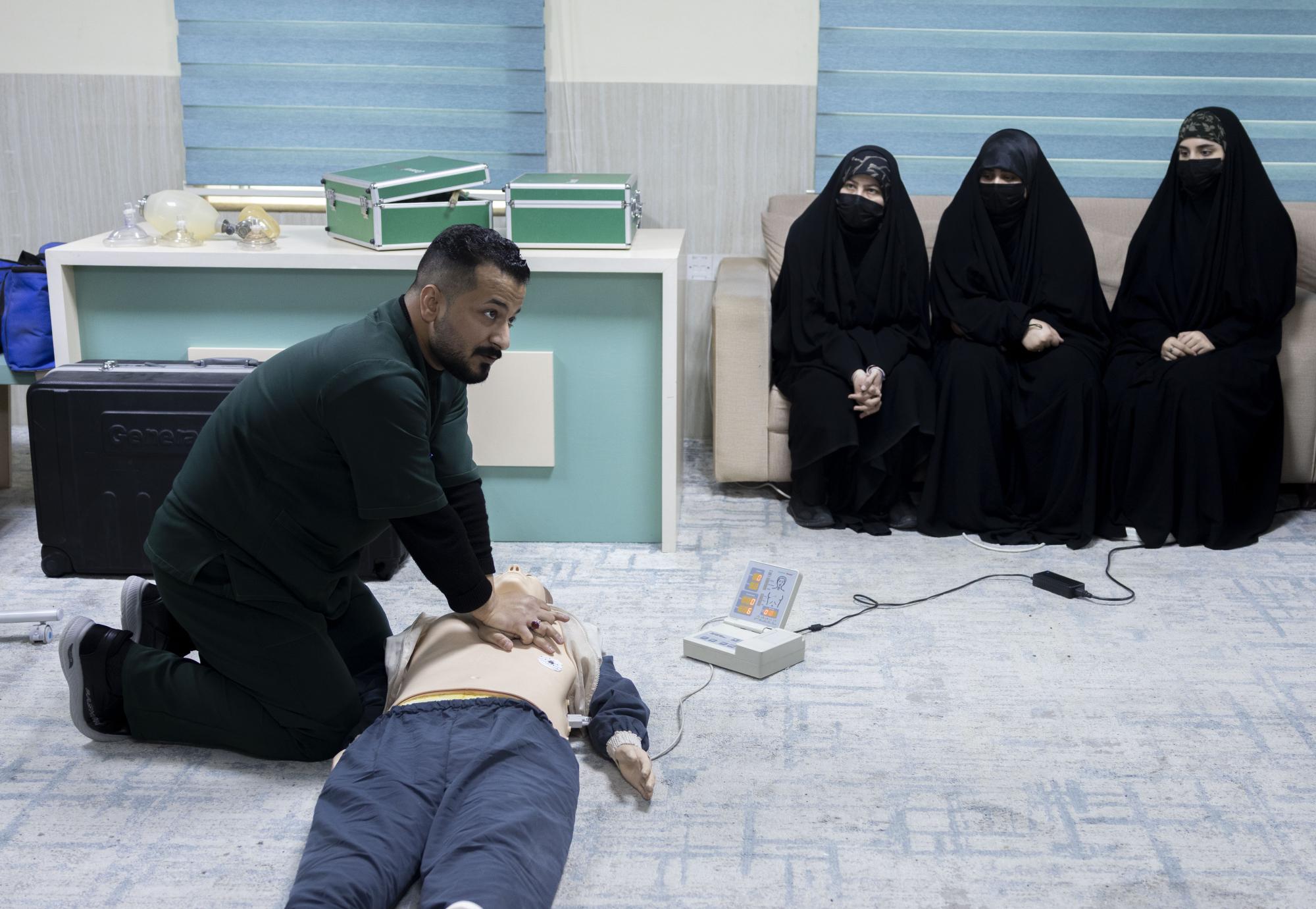 يواصل قسمُ الشؤون الطبّية في العتبة العبّاسية المقدّسة، إقامة البرنامج التدريبيّ لملاكاته النسوية بالتعاون مع مستشفى الكفيل التخصّصي. وقال مدرب الدورة الدكتور ناجي العسيلي، إن: "تنظيم الدورة التدريبية الثالثة المخصّصة للملاكات التمريضية النسوية، يأتي استكمالاً للبرنامج المُعدّ لتدريب الملاكات الطبّية والتمريضية التي ستعمل في مركز السيد جعفر الحلّي (رحمه الله) للخدمات الطبّية الطارئة". وأضاف أن "الدورة تضمّنت في اليوم الأوّل التدريب على مبادئ وأساسيات منع العدوى داخل المراكز الصحّية والمستشفيات، وطريقة ارتداء الأدوات الواقية، إضافة إلى آليّة فرز النفايات الصحّية". وبيّن أن "اليوم الثاني شمل برنامجاً تدريبياً للعمل على إنعاش القلب الرئويّ للبالغين والصغار والرضّع، إلى جانب التدريب على استخدام أجهزة مزيل الرجفان الآليّ، مع التأكيد على أهمّية (الأكسجة) أثناء عملية الإنعاش باستخدام أجهزة الأنبوبات". وأشار العسيلي إلى أن "الدورة اختُتِمت بإجراء اختباراتٍ شاملة للملاكات التمريضية النسوية المشارِكة، للوقوف على مستوى الجاهزيّة والمهارة في تطبيق الإجراءات الطبّية والتمريضية التي تمّ التدريب عليها".
