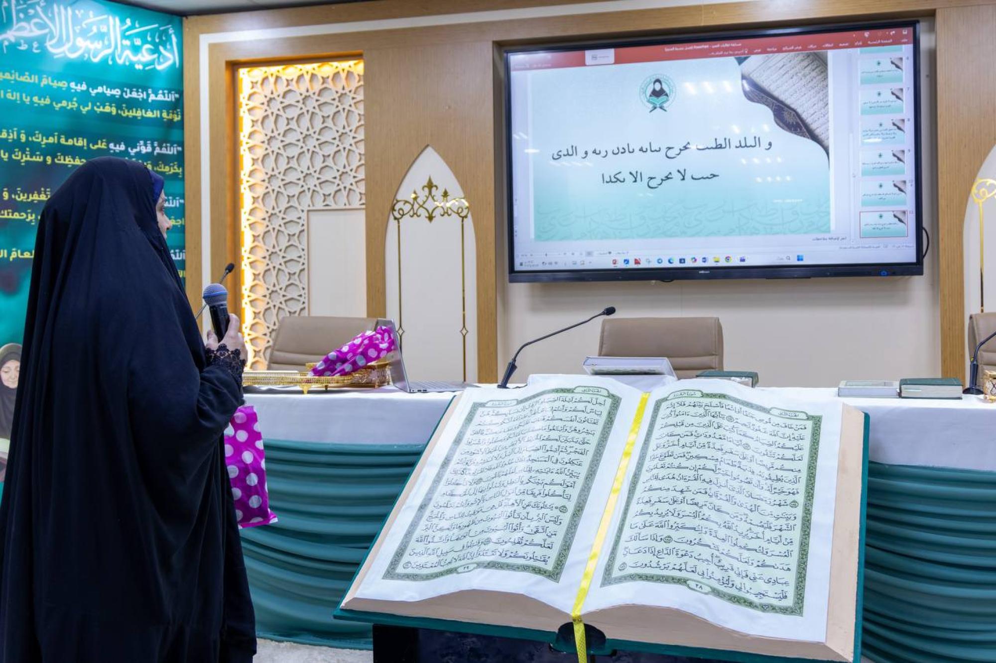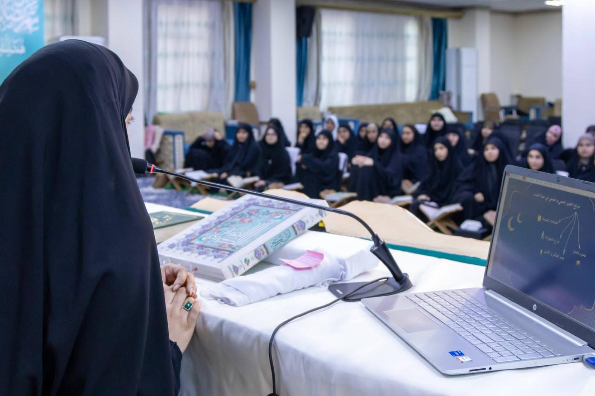 نظمت شعبة فاطمة بنت أسد (عليها السلام) للدراسات القرآنية التابعة لمكتب المتولي الشرعي للشؤون النسوية في العتبة العباسية المقدسة، أمسية رمضانية لطالبات الأقسام الداخلية في جامعة العميد. وأُقيمت الأمسية في مركز الصديقة الطاهرة (عليها السلام) للنشاطات النسوية التابع للعتبة المقدسة، بمشاركة نحو سبعين طالبة. واستُهلت الأمسية بتلاوات عطرة من القرآن الكريم، أعقبتها محاضرة ألقتها إحدى أستاذات الشعبة بعنوان (موانع التطور العلمي والعملي في حياة الإنسان)، إذ تطرقت إلى العوائق التي تؤخر مسيرة الفرد، مثل التشبث بالعادات السلبية، وعدم التفكر والتأمل، والانشغال بهموم الدنيا. وتضمنت الأمسية فقرة فقهية قدمتها مسؤولة الشعبة، السيدة فاطمة الموسوي، تناولت عبرها شرحًا لأهم المسائل الابتلائية، وأكدت أنّ فهم الأحكام الفقهية يُعد جزءًا أساسيًا من تكوين شخصية الطالبات وتهيئتهن للحياة العملية والعبادية على حد سواء. واشتمل البرنامج على مسابقة قرآنية تحفيزية، وتكريم الفائزات بهدايا من بركات مرقد أبي الفضل العباس (عليه السلام)، إضافة إلى وجبة إفطار من مضيف العتبة العباسية المقدسة.