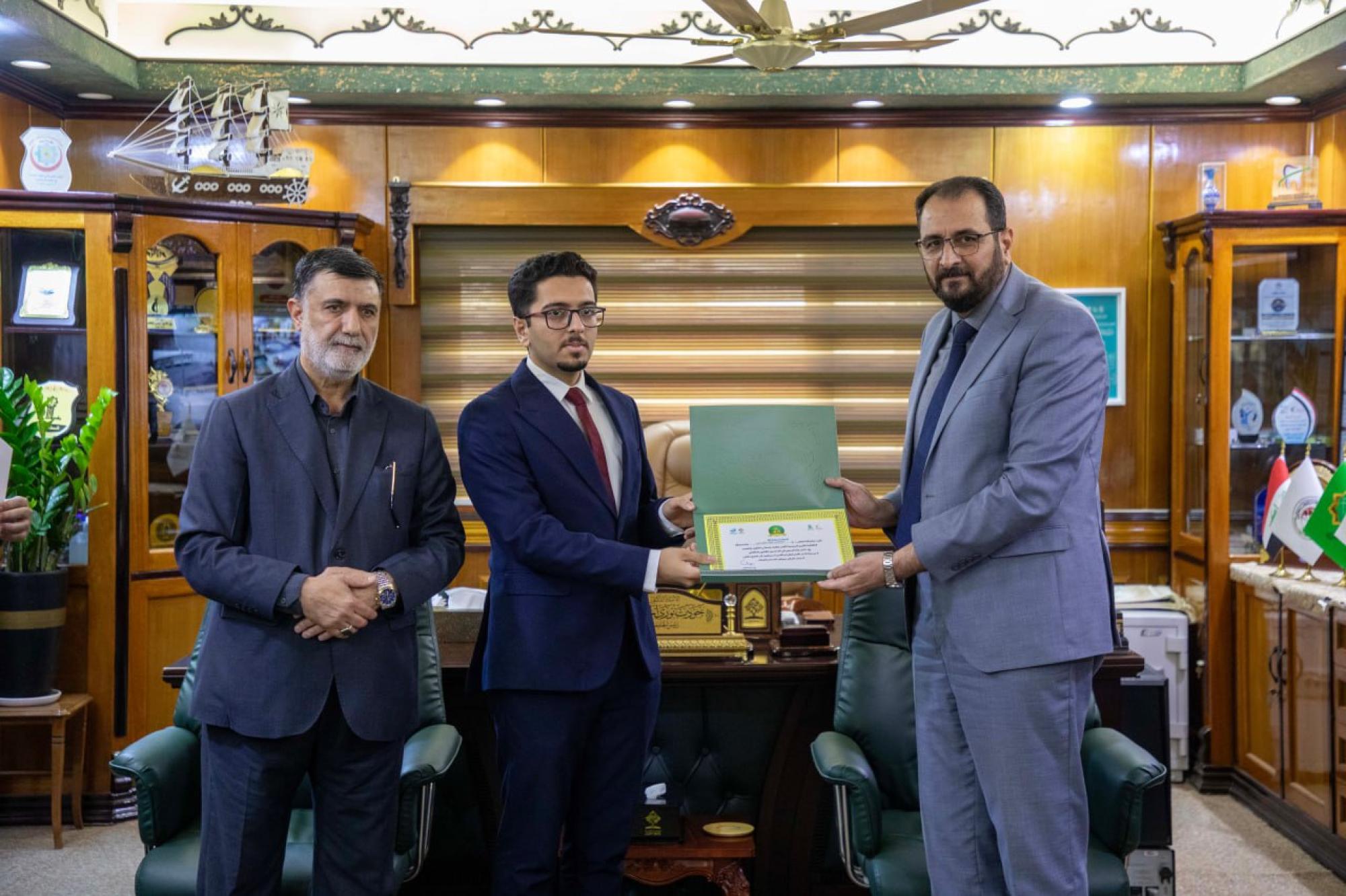كرّمت العتبةُ العبّاسية المقدّسة طلبة جامعة العميد، الفائزين في المسابقة الثقافية الكبرى السنوية الأولى للمطالعة والقراءة. جاء ذلك خلال زيارة عضو مجلس إدارة العتبة المقدّسة والمُشرِف على المسابقة الدكتور أفضل الشامي إلى الجامعة، حيث أُجرِي تكريمُ الطلبة بحضور رئيس الجامعة الدكتور جودت نوري الجشعمي.