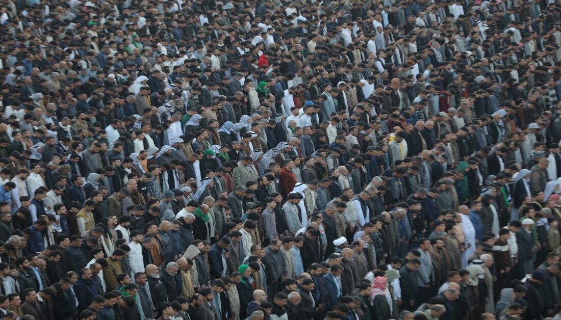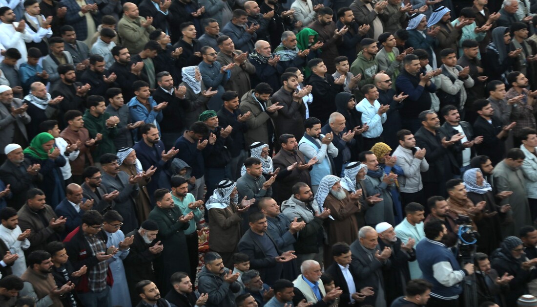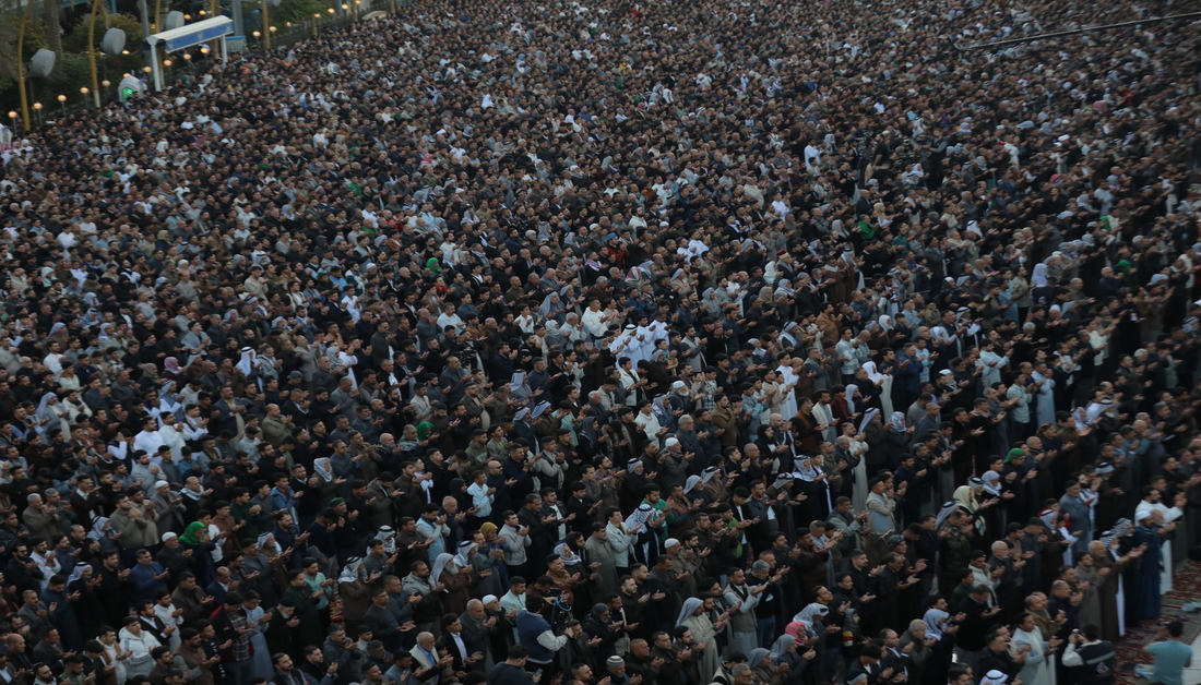 بالصور: من قلب كربلاء… حشود غفيرة تؤدي صلاة عيد الفطر عند مرقدي الإمام الحسين وأخيه أبي الفضل العباس (ع)
