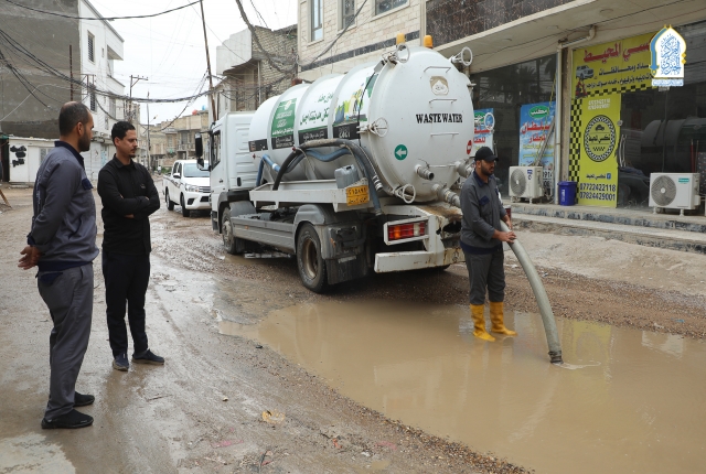 الأمانة العامة للعتبة الكاظمية المقدسة تستجيب لمناشدات المواطنين والإسهام في سحب مياه الأمطار في العديد من المناطق