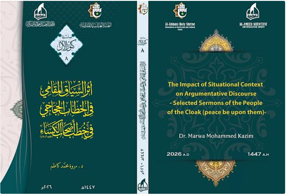 أصدرت جمعية العميد العلمية والفكرية الكتاب الثامن ضمن سلسلة كنوز الآل. وقال رئيس قسم الرسائل والأطاريح في الجمعية، الدكتور أحمد الكعبي: إنّ "الكتاب الموسوم بـ "أثر السياق المقامي في الخطاب الحجاجي في خطب أصحاب الكساء (عليهم السلام)" ألّفته الدكتورة مروة محمد كاظم، ويتناول في فصله الأوّل أثر السياق المقامي لنصوص أهل البيت (عليهم السلام) في حديث الكساء". وأضاف أنّ "الفصل الثاني من الكتاب يتطرّق إلى أثر السياق المقامي في تحديد المقدمات والآليات الحجاجية على وَفقِ منهج بريمان، أمّا الفصل الثالث اختصّ بأثر السياق المقامي في إيراد الحجج داخل النصوص".