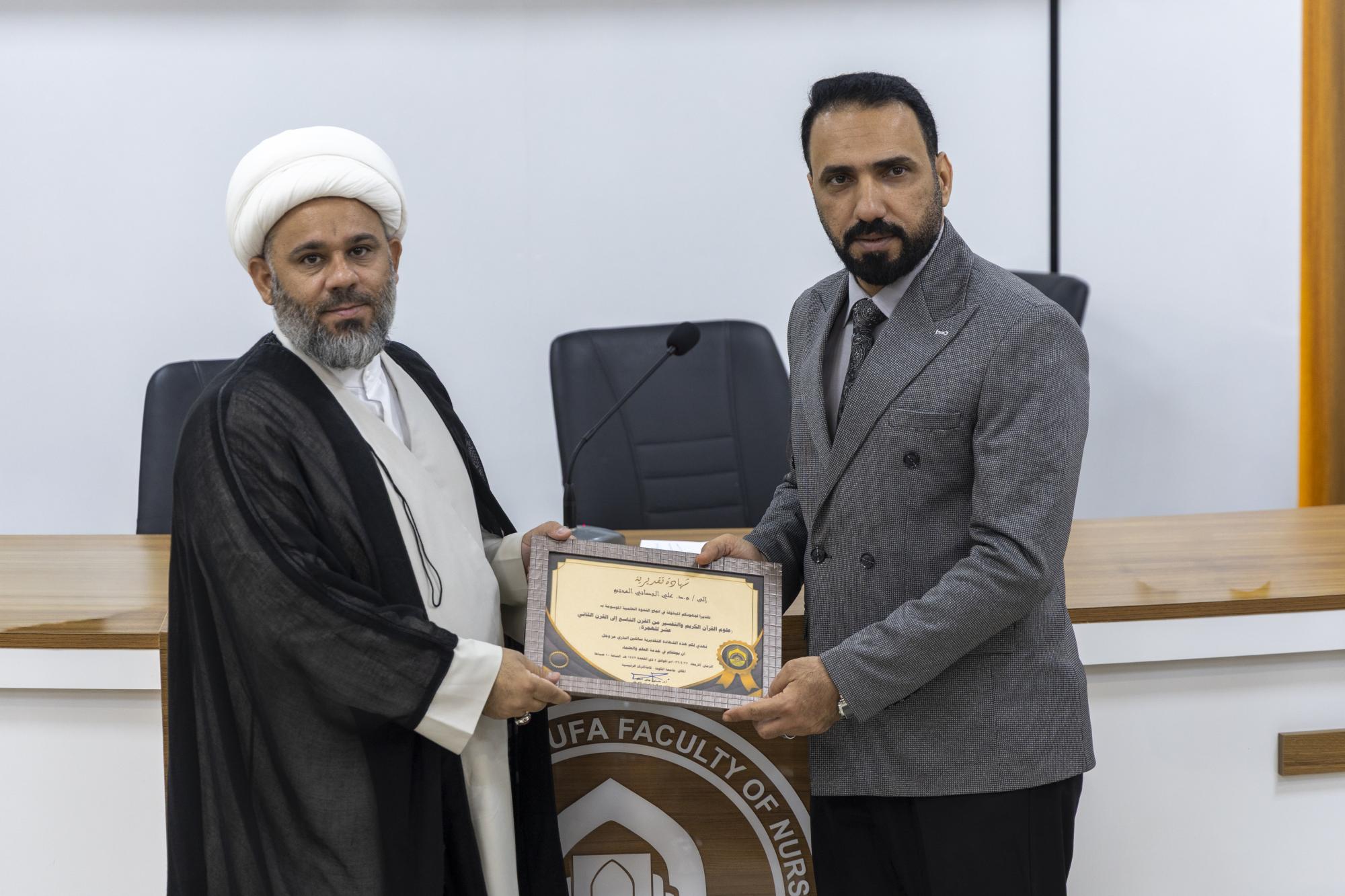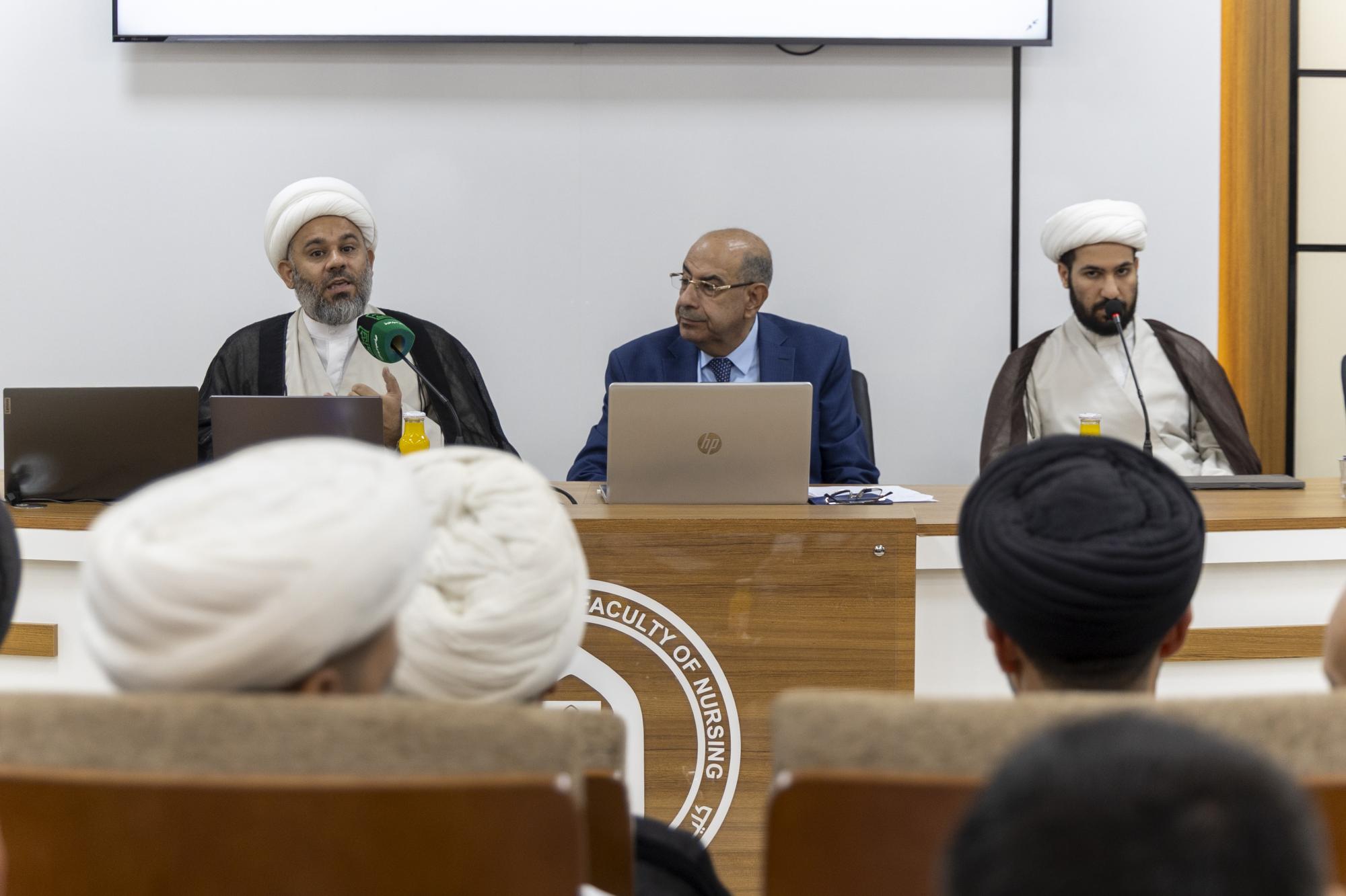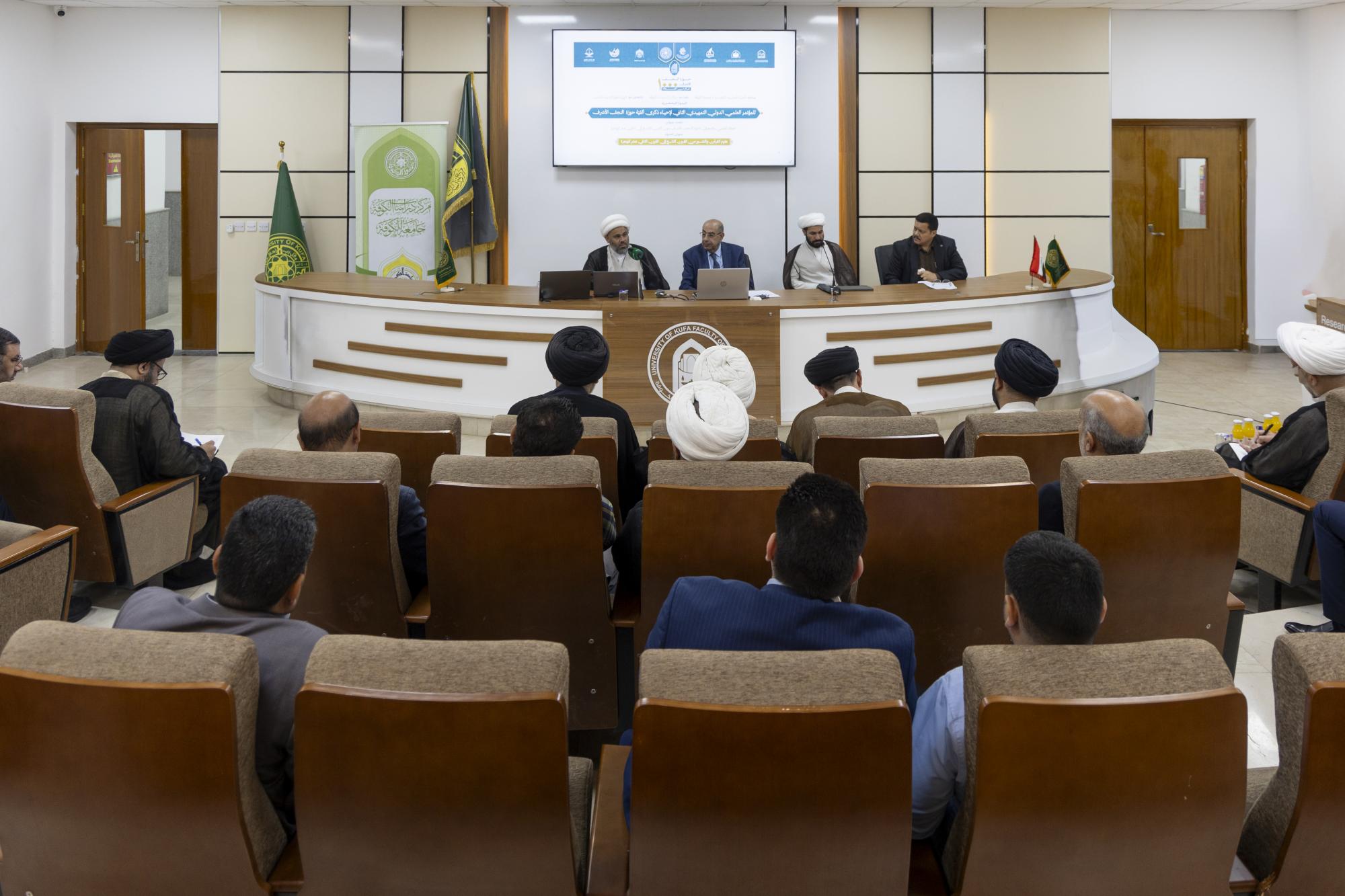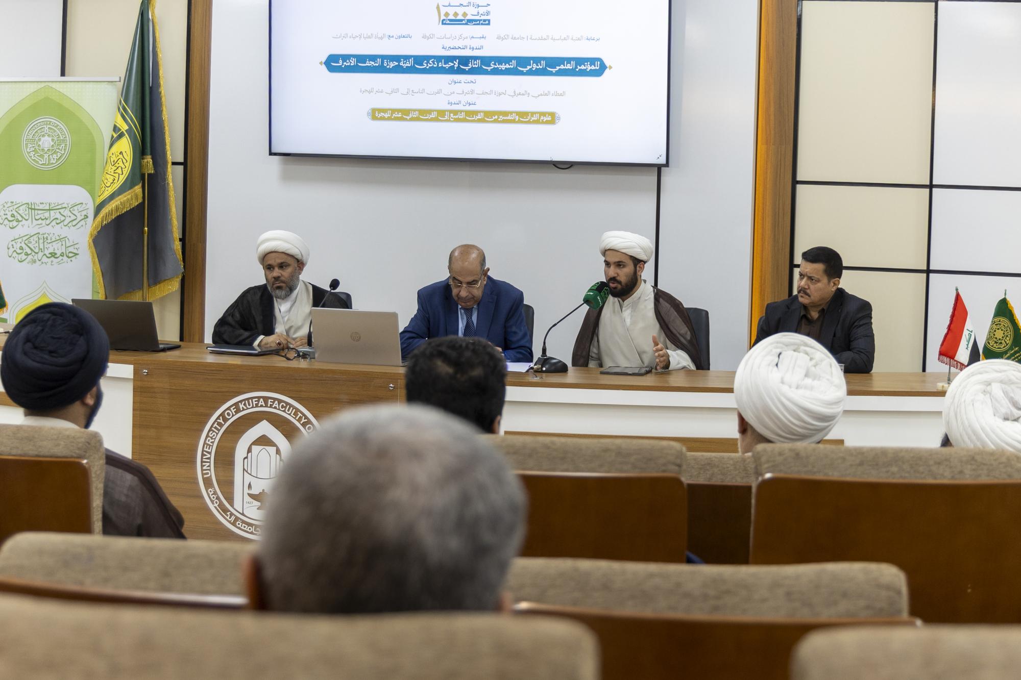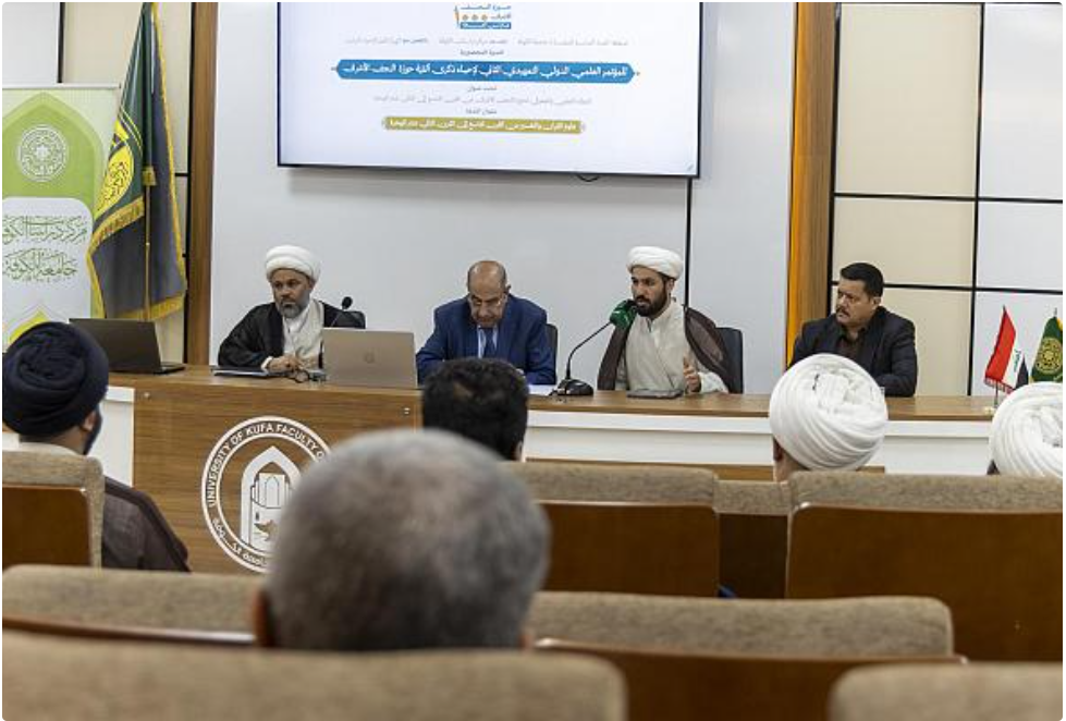 ناقش الباحثون المشاركون في الندوة التحضيرية للمؤتمر العلمي الدولي التمهيدي الثاني لإحياء ذكرى ألفية حوزة النجف الأشرف، منهجي التفسير والاستدلال عند علمائها. ونظم الندوة برعاية العتبة العباسية المقدسة مركز دراسات الكوفة في جامعة الكوفة، بالتعاون مع الهيأة العليا لإحياء التراث في العتبة المقدسة، تحت شعار (العطاء العلمي والمعرفي لحوزة النجف الأشرف من القرن التاسع إلى الثاني عشر للهجرة)، وبعنوان: (علوم القرآن والتفسير من القرن التاسع إلى القرن الثاني عشر للهجرة). وقال الباحث الشيخ أحمد الرماحي: إنّ البحث جاء بعنوان: (المنهج التفسيري عند الشيخ الأسترابادي)، وركز على أبرز متبنياته الفقهية، مبينًا أنّ الأبحاث والمصنفات في هذا المجال دارت بين نمطين، المنهج السردي التحليلي والمنهج الموضوعي. من جانبه أوضح الباحث الدكتور عمر الزرقاني من مركز دراسات الكوفة، أنّ "الورقة البحثية جاءت بعنوان: (المنهج الاستدلالي للشيخ أحمد الجزائري في كتابه قلائد الدرر في بيان آيات الأحكام بالأثر – كتاب الجهاد أنموذجًا)، تناولت مفهوم الجهاد في الفكر الإسلامي بوصفه جهادًا دفاعيًّا لا عدوانيًّا، وقد يكون عينيًّا لا كفائيًّا في حالات الدفاع عن بيضة الإسلام أو عند تراصّ الصفوف.