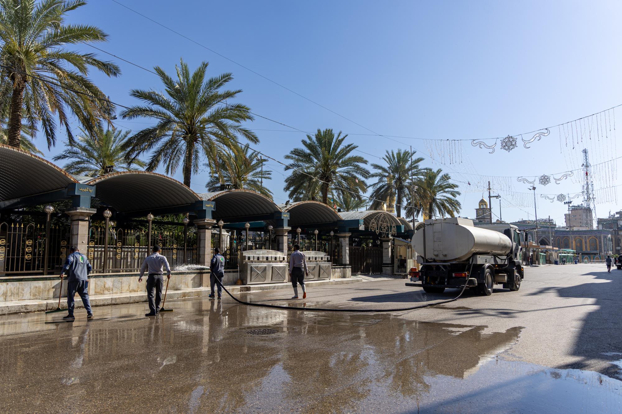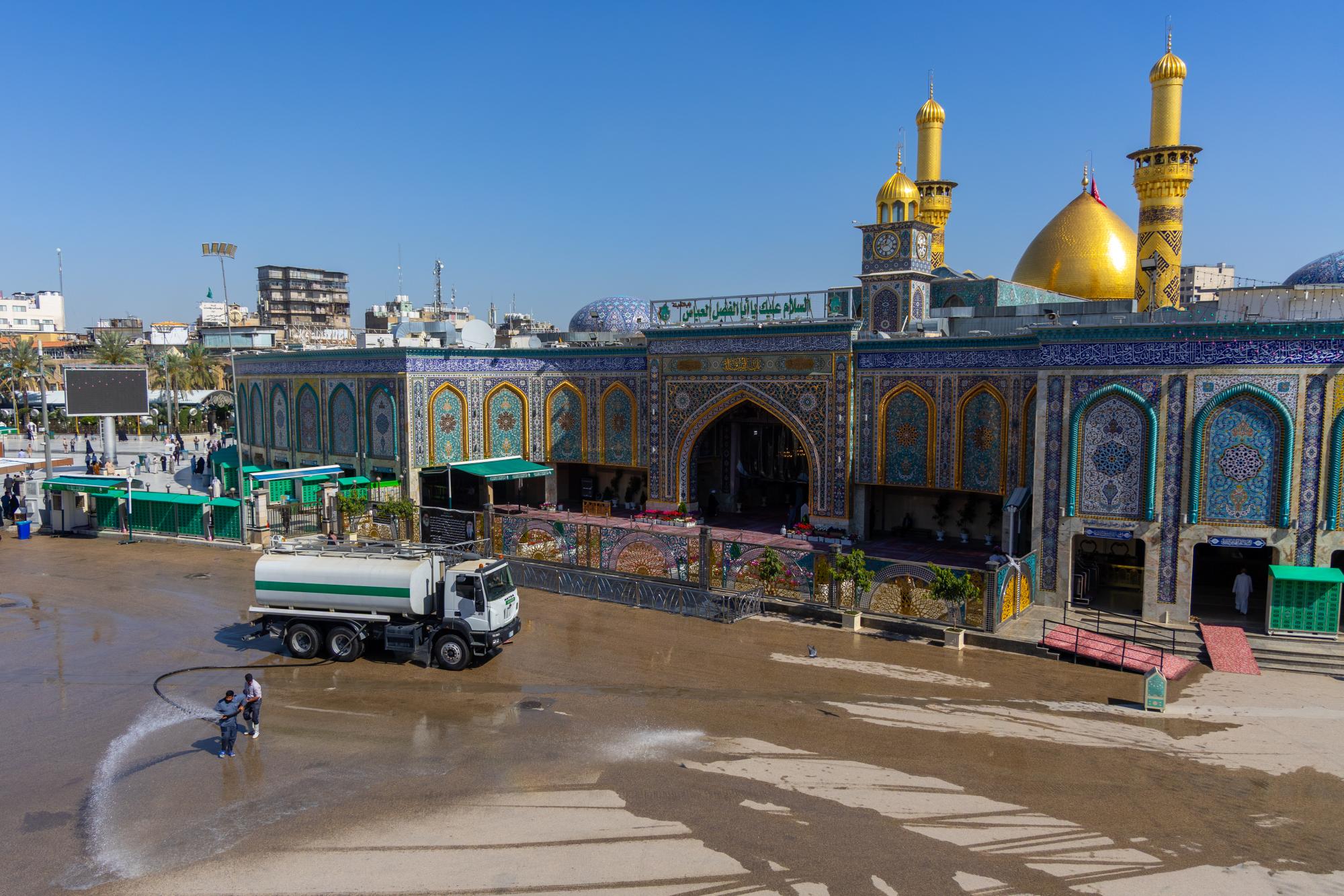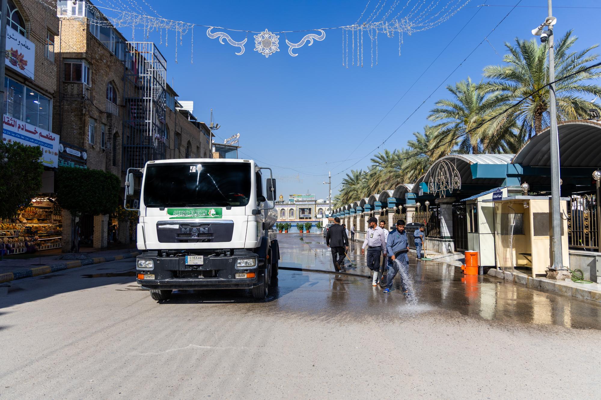 قسم الشؤون الخدمية ينفّذ حملة لغسل محيط العتبة العباسية المقدسة وتنظيفه