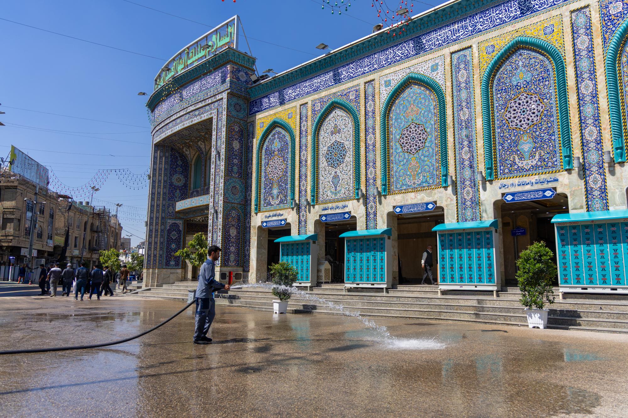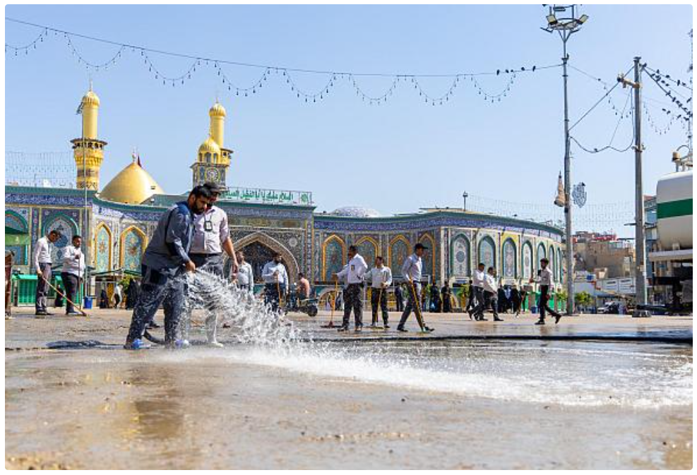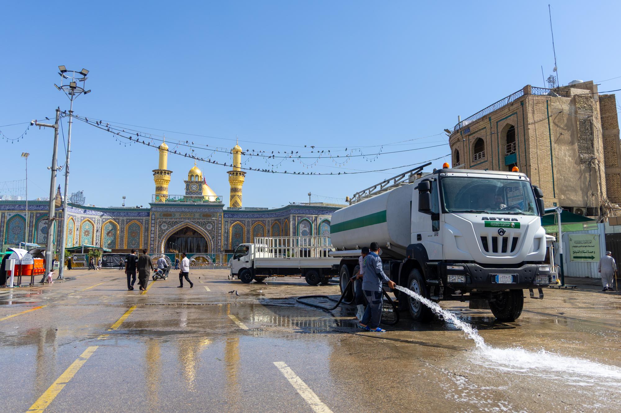 قسم الشؤون الخدمية ينفّذ حملة لغسل محيط العتبة العباسية المقدسة وتنظيفه