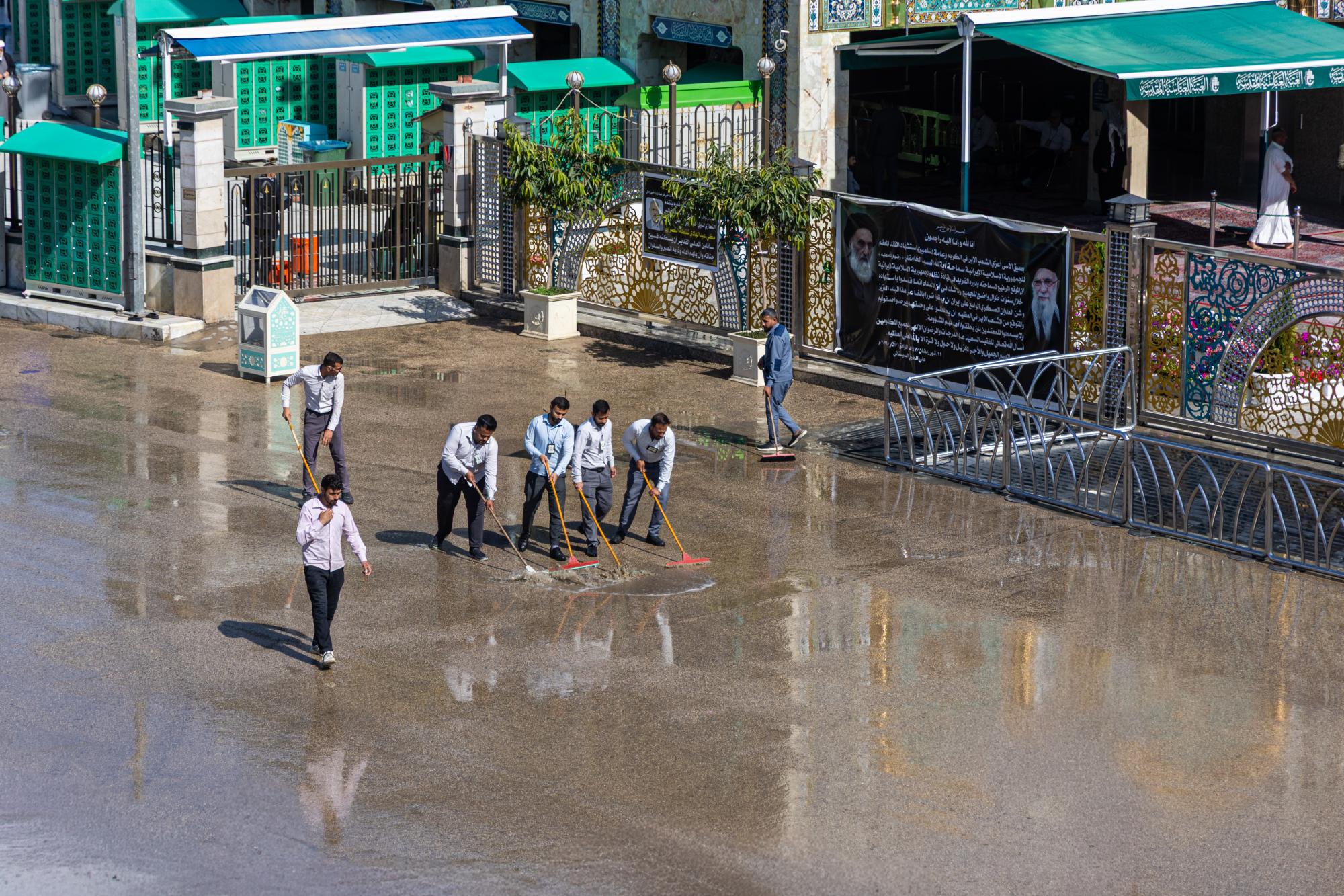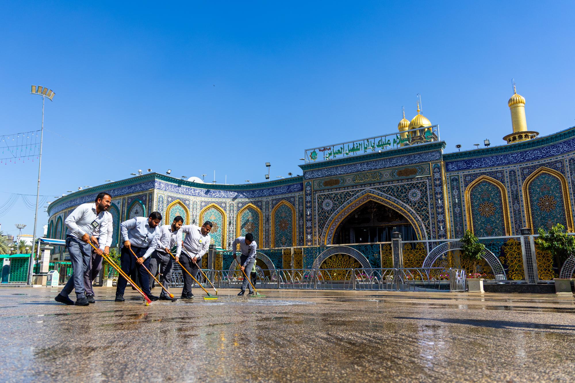 نفّذ قسم الشؤون الخدمية في العتبة العباسية المقدسة، حملةً لغسل محيط صحن مرقد أبي الفضل العباس (عليه السلام) وتنظيفه. جاء ذلك ضمن جهوده الميدانية المتواصلة لتنظيف الطرق المؤدية إلى الحرم الشريف وتجهيزها. وشملت الحملة غسل الأرضيات والممرات الرئيسة والمداخل باستخدام الآليات التخصصية، ورفع المخلّفات وتنظيم المكان بما ينسجم مع كثافة توافد الزائرين، لضمان انسيابية حركتهم وتوفير أجواء مريحة لهم في أثناء أداء مراسم الزيارة.