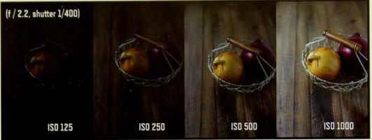 وكلما زاد رقم الحساسية الضوئية ISO كلما زاد التحبب في الصورة وقل الاحتياج للضوء.