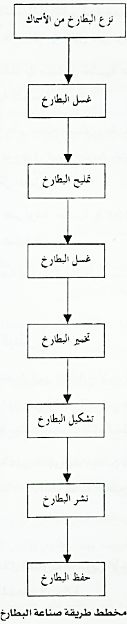 1) تنزع البطارخ من الاسماك فور صيدها مع ملاحظة نزع جزء صغير من جسم السمكة قرب نهاية البطارخ.